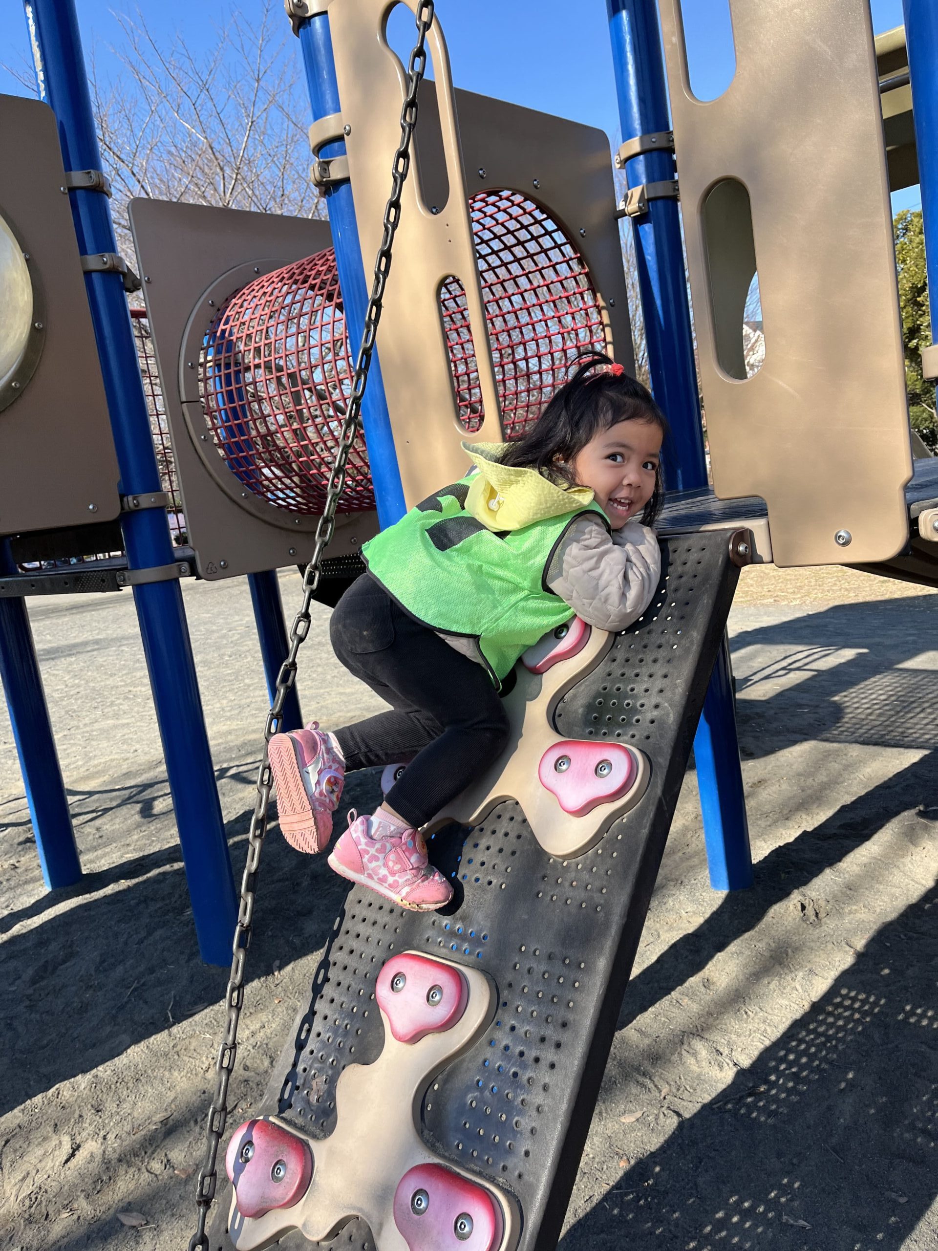 さらにアスレチックでは「見てて!こんなに高く登れるよ!」と、驚くような挑戦も見られました。初めての高さに挑む姿にはハラハラしつつも成長を感じる場面でした。