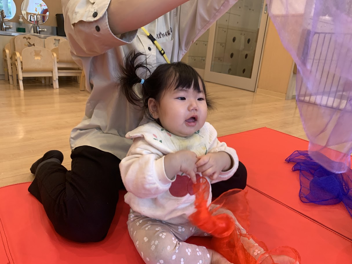 つついたり、ひらひらしたり、にぎったり、色んな動きで刺激を受けていこう~!