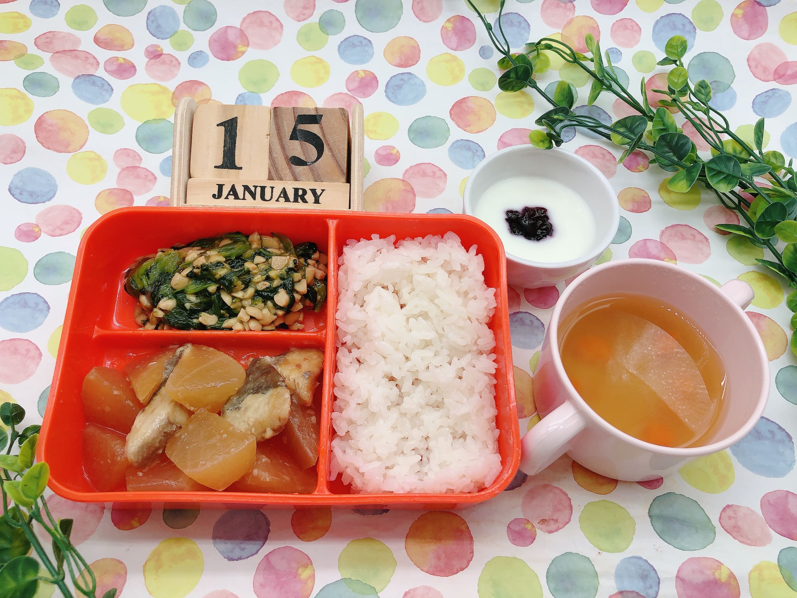 - 汁物: みそ汁(じゃが芋・人参)
