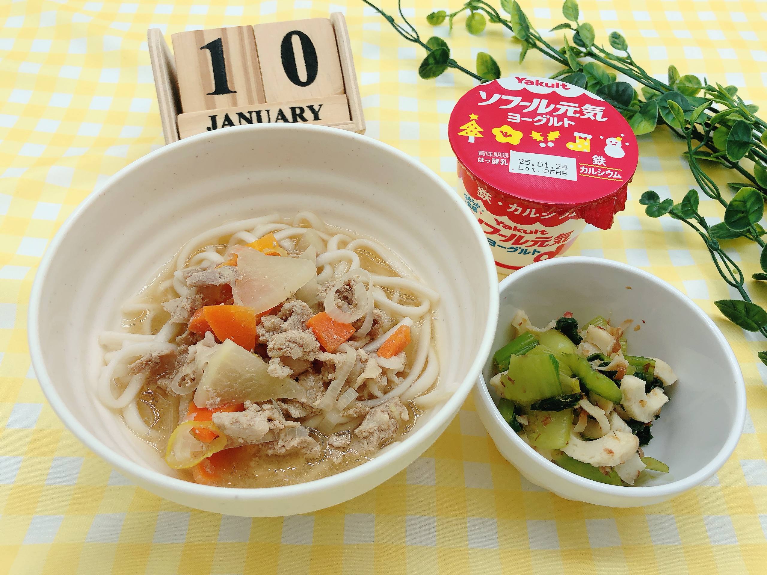 - うどんと豚汁の組み合わせが好評で、おかわりを求める子どもたちが多かったです。カップヨーグルトもデザートとして好評で、子どもたちは喜んで食べていました。