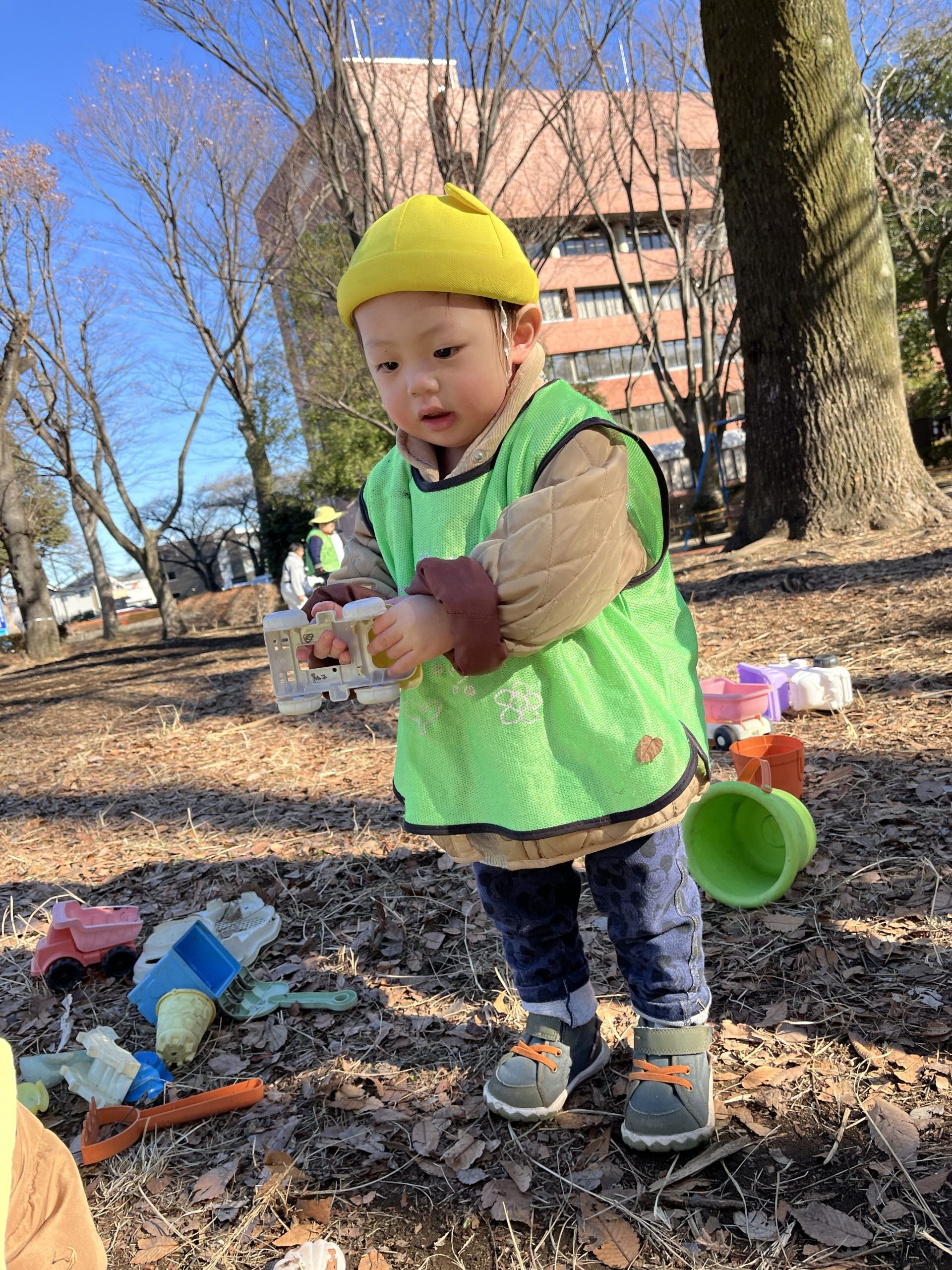 広い公園ではお楽しみが色々です☆たくさん歩いて探検が好きな子や、ちょっと難しい遊具に挑戦してよじ登ってみたりと「やってみたい!」が止まりません♡やりたいときには必ず保育者が付いて安全を確認しながらチャレンジしながら出来た達成感を感じ、伸び伸び遊びます☆
