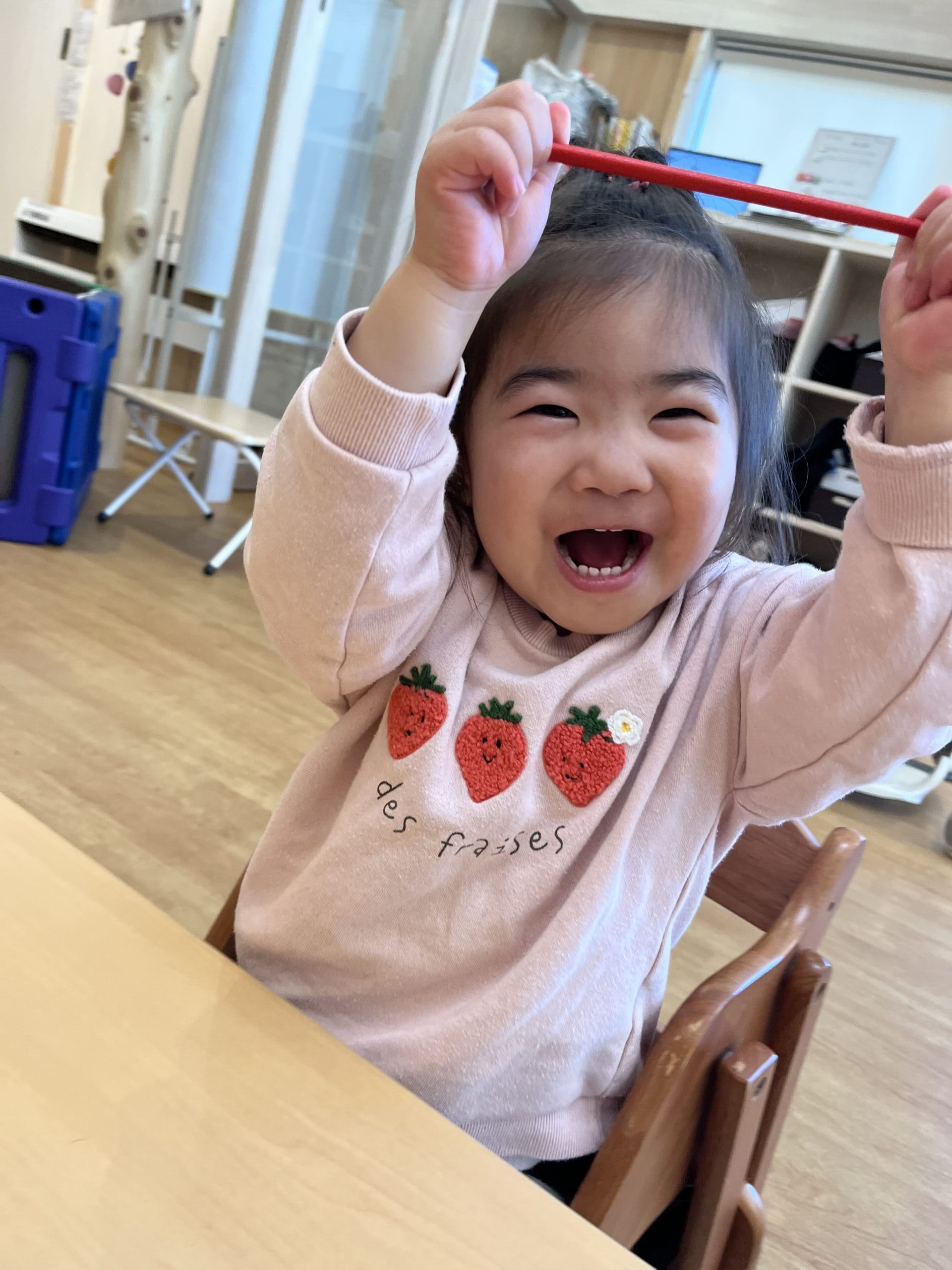 「全部たべて、いいうんち出るかな?」と2歳児さん!先生が「からだの中でお野菜が水といっしょにお仕事してくれるよ」と補足すると、「おしごと?」と不思議そうに首をかしげる子ども達。「そう、みんなの体をきれいにしてくれるんだよ」と笑顔で返すと、子どもたちはにっこり♡