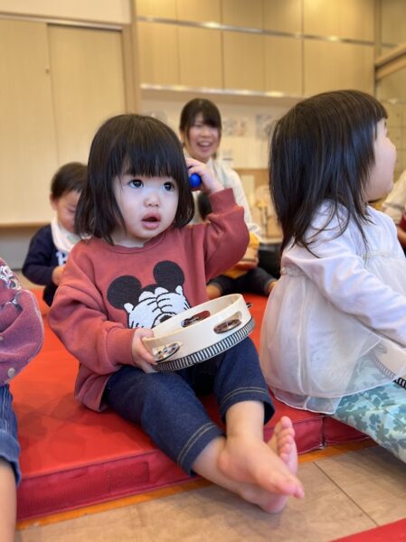 季節に合った楽器を使用しながらの音楽あそびを行いました!