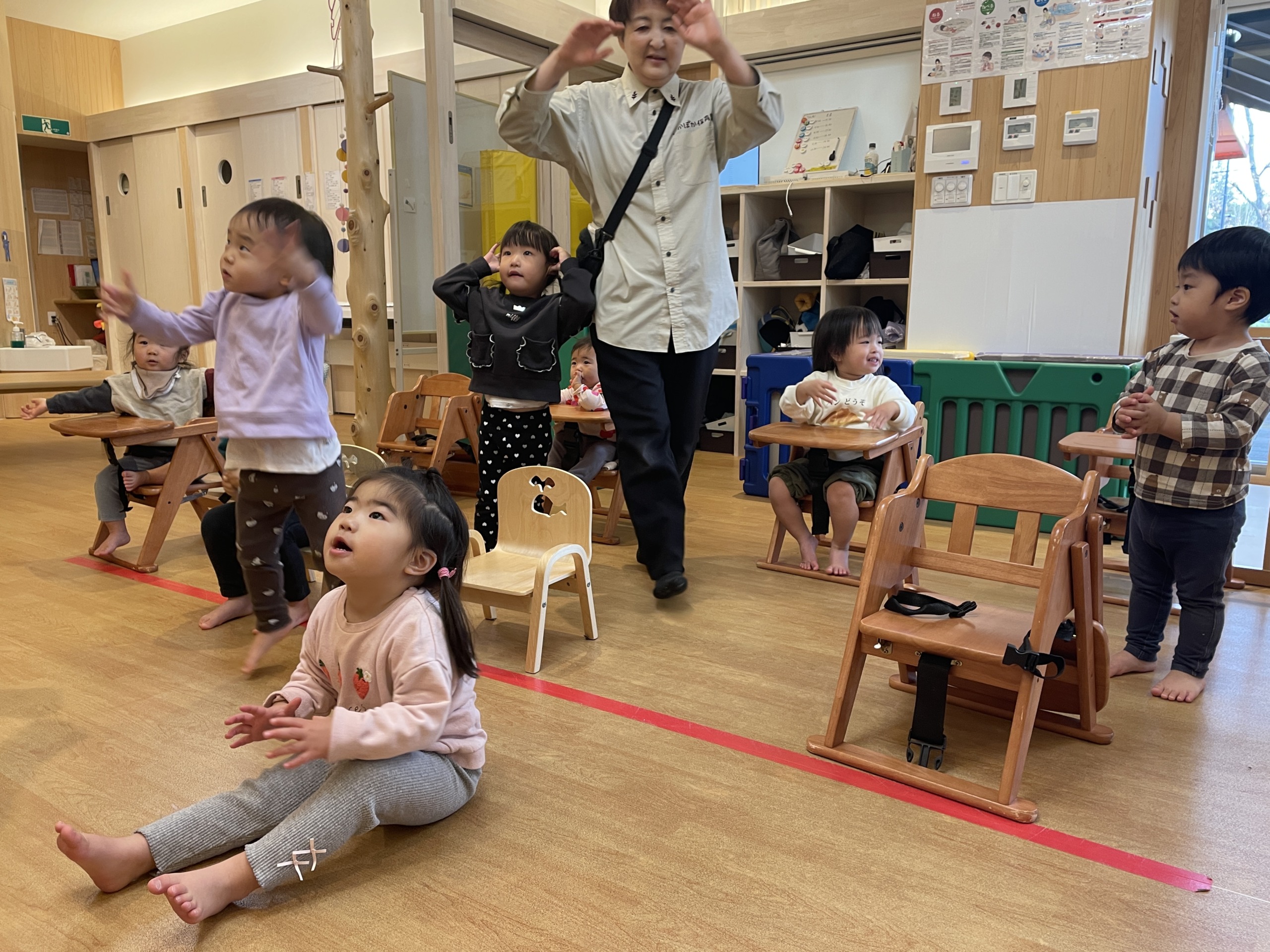 ワクワクしたリズムに合わせて、伸び伸びと踊ったり歌ったり!元気いっぱい表現できていました♬