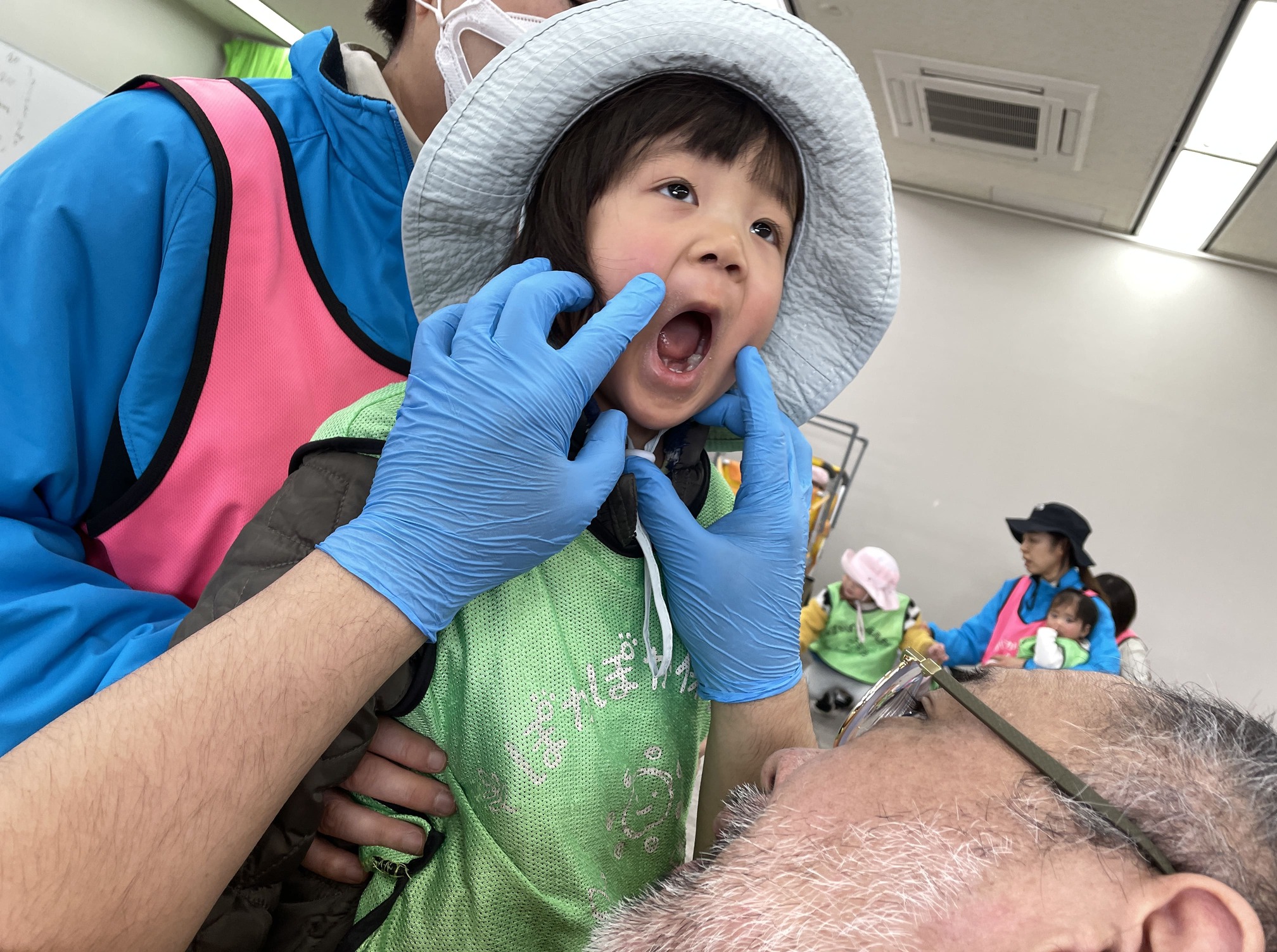 歯医者の先生を前にすると緊張が高まり、泣いてしまう子もいる一方で、練習の成果が出て落ち着いて口を開ける子もいました!