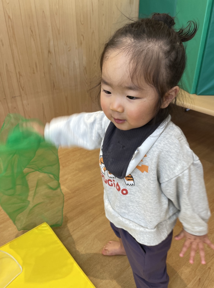 スカーフは2枚選び、子ども「どうぞ!」と先生へ渡す思いやりのやりとりがありました。