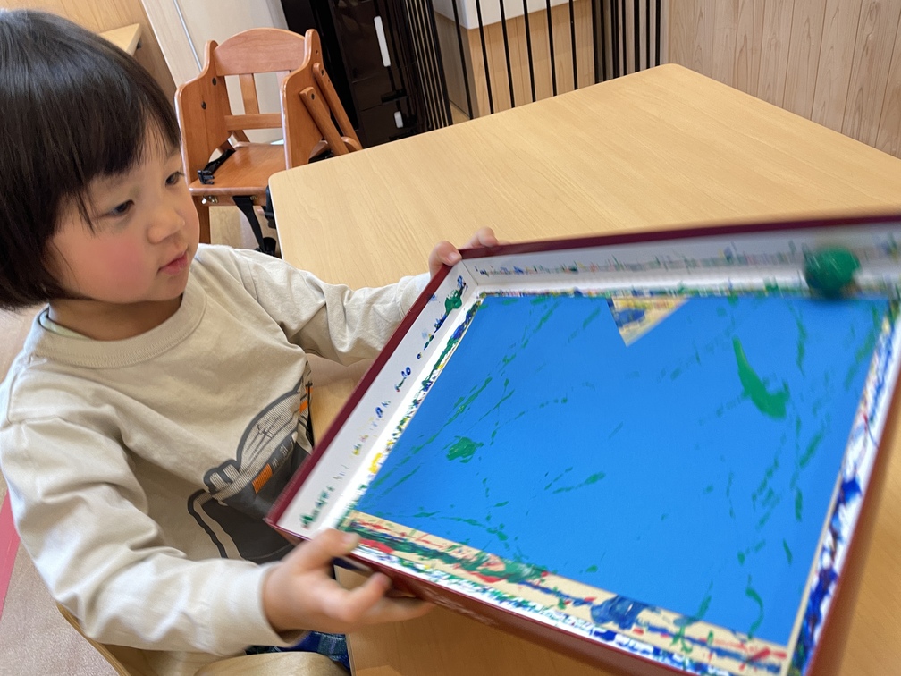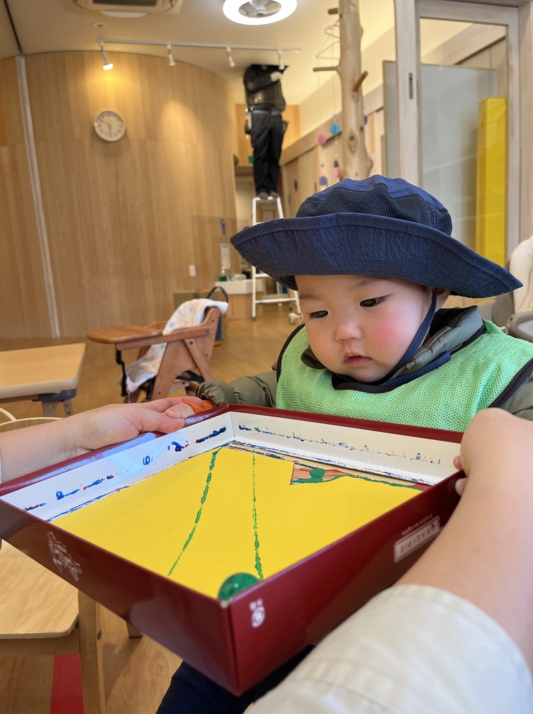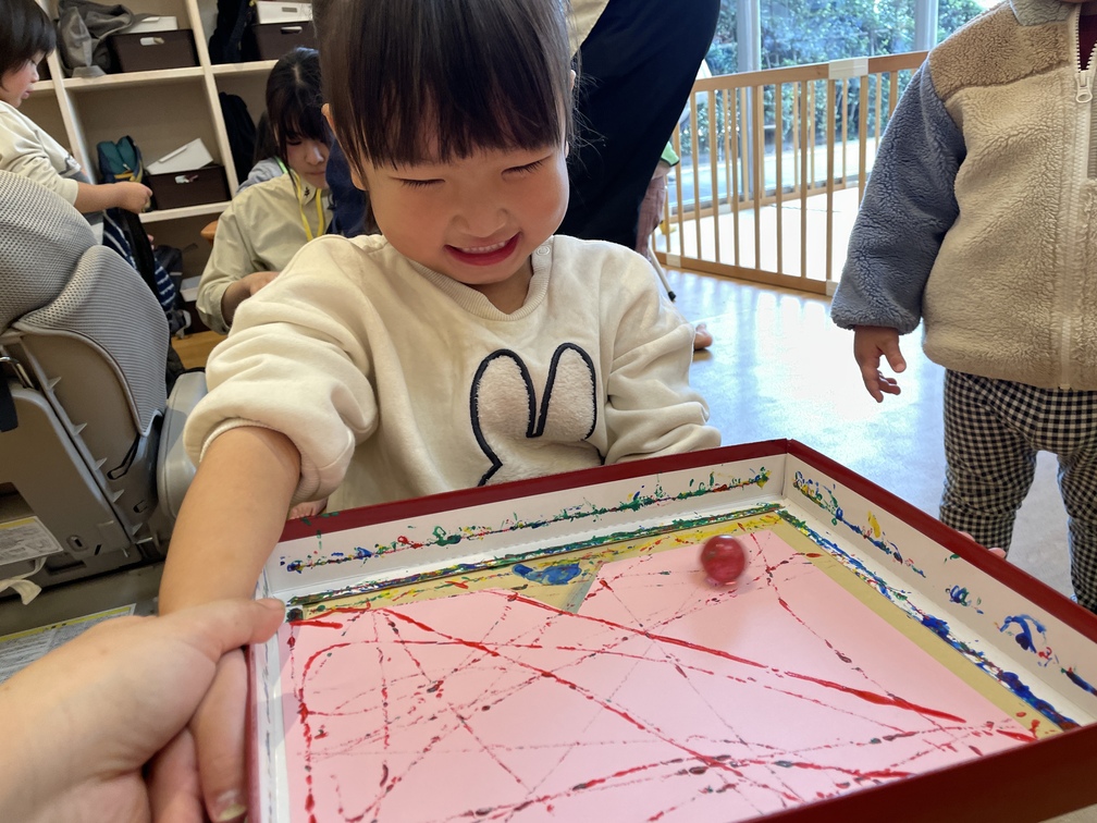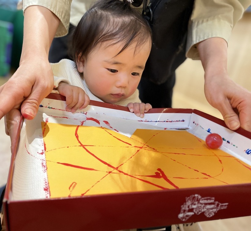 こちらもボールが転がると色が付くのを不思議そうに見つめる表情が可愛いですね♪