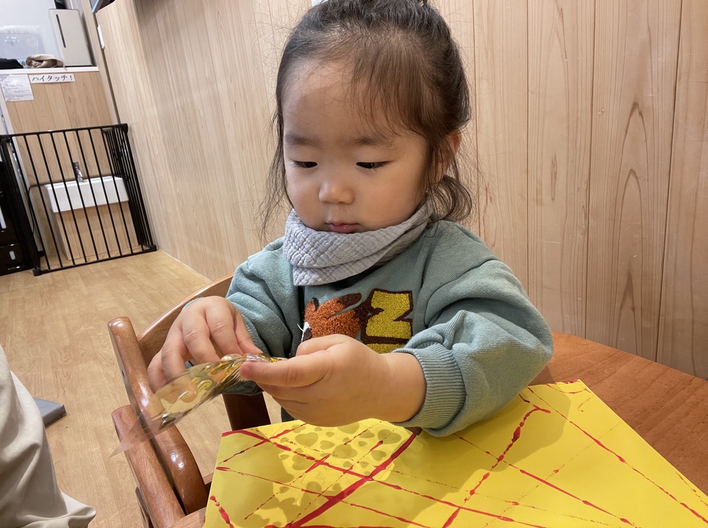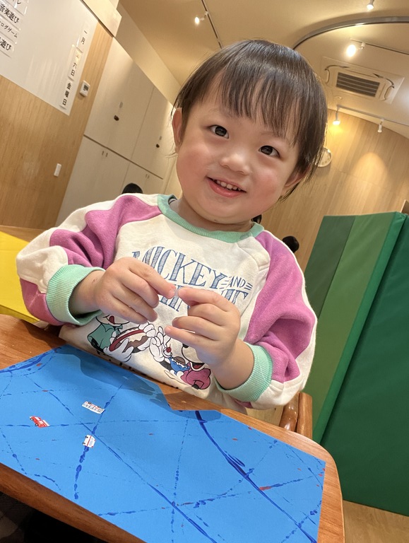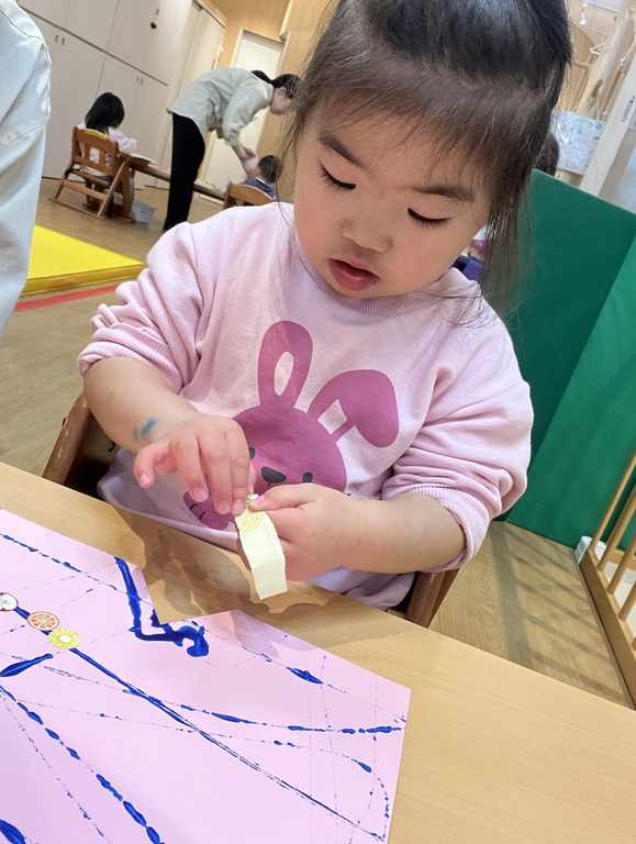 シール貼りでは、自分で剥離し指先で貼り付けられる子もいて驚きました!