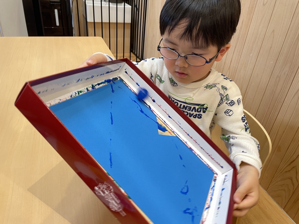 箱を持ちやすい方向に変えたり箱を傾ける角度を調整しボールの動くスピードを出して工夫していました!