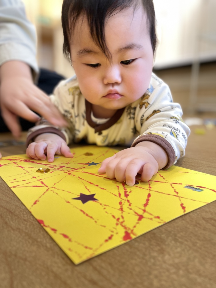 キラキラのシール、立体型のシールなど感触や目にも楽しく、キョロキョロ見比べていました♪