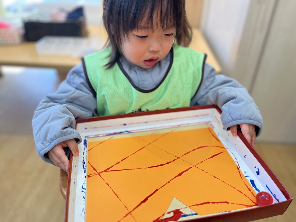 絵の具を嫌がっていた子も、色づくという仕組みに気づくと笑顔が満開になりました♡