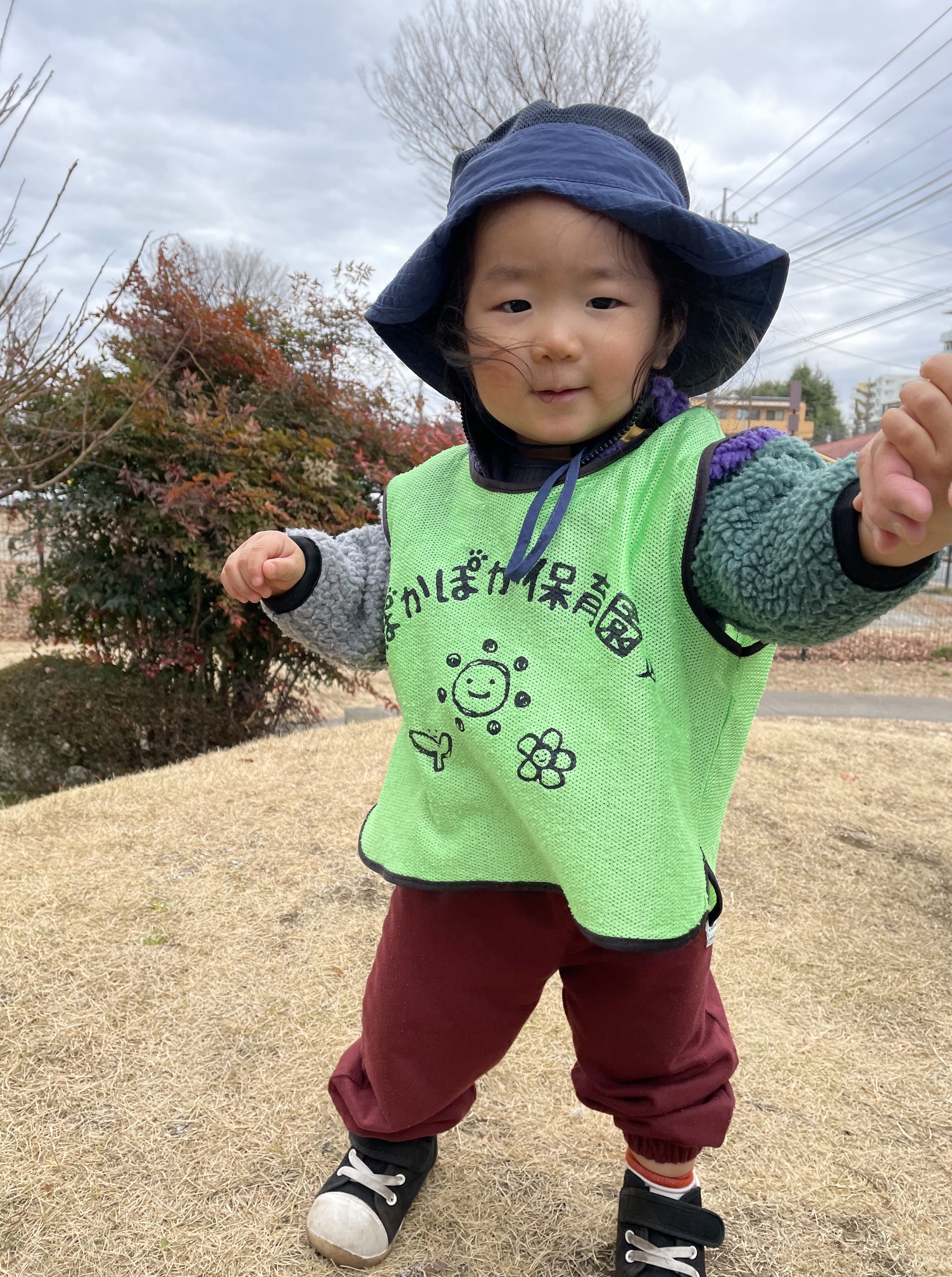 みんなで一斉に走る場面では少し緊張の様子もあり、先生の手をぎゅっと握って安心を求める姿も見られましたが、徐々に慣れて元気な笑顔が見られました☆帰り道は乗り物を見つけて友だちと嬉しそうにお話を楽しみましたよ。