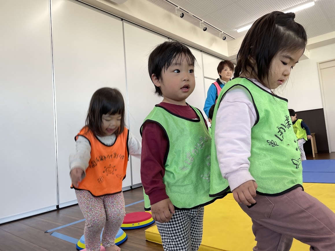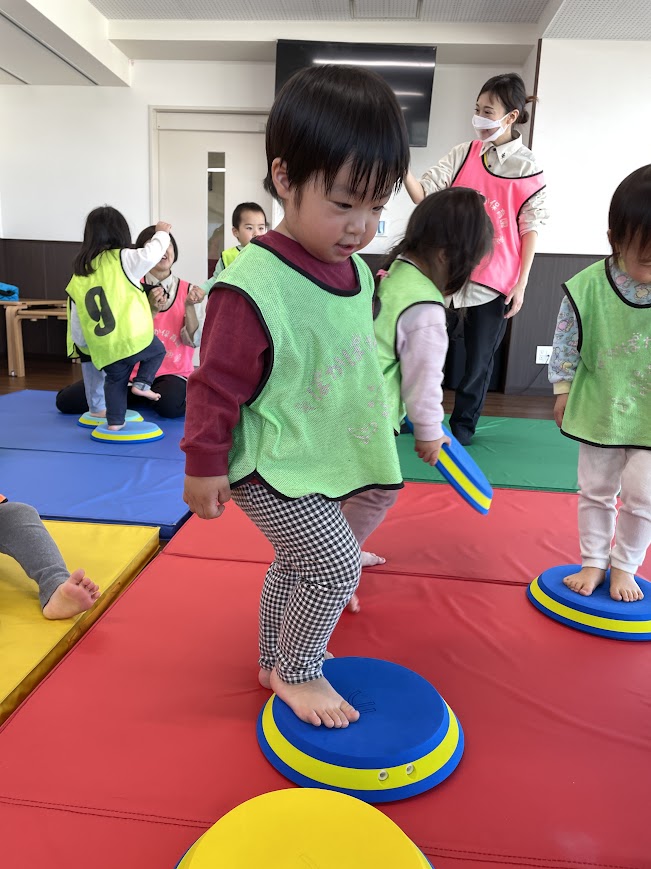 フラフープサーキットではたくさんの色に囲まれながら歩くことを楽しみました!
