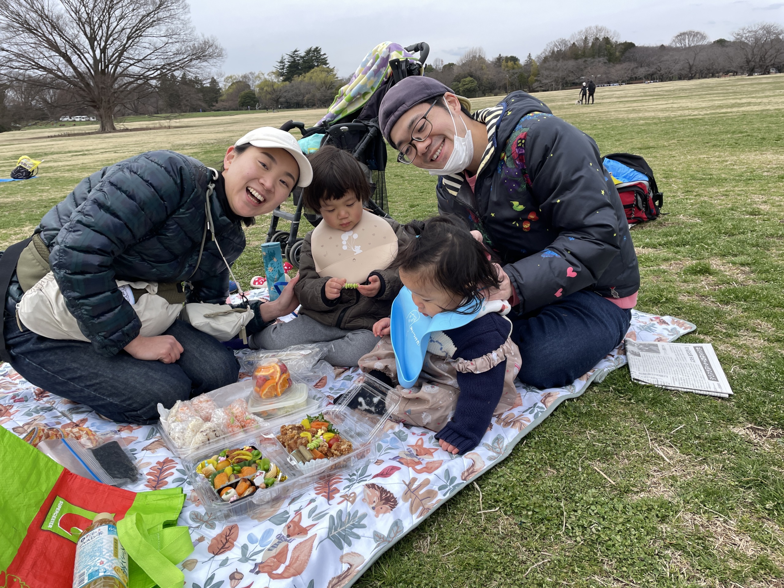 体をたくさん動かしたあとは、ほっと一息のお弁当タイムです。広い公園で食べるお弁当はやっぱり特別ですね!「おいしいね」「見て見て!」と会話も弾み、あたたかい雰囲気の中で楽しい時間を過ごしました♡