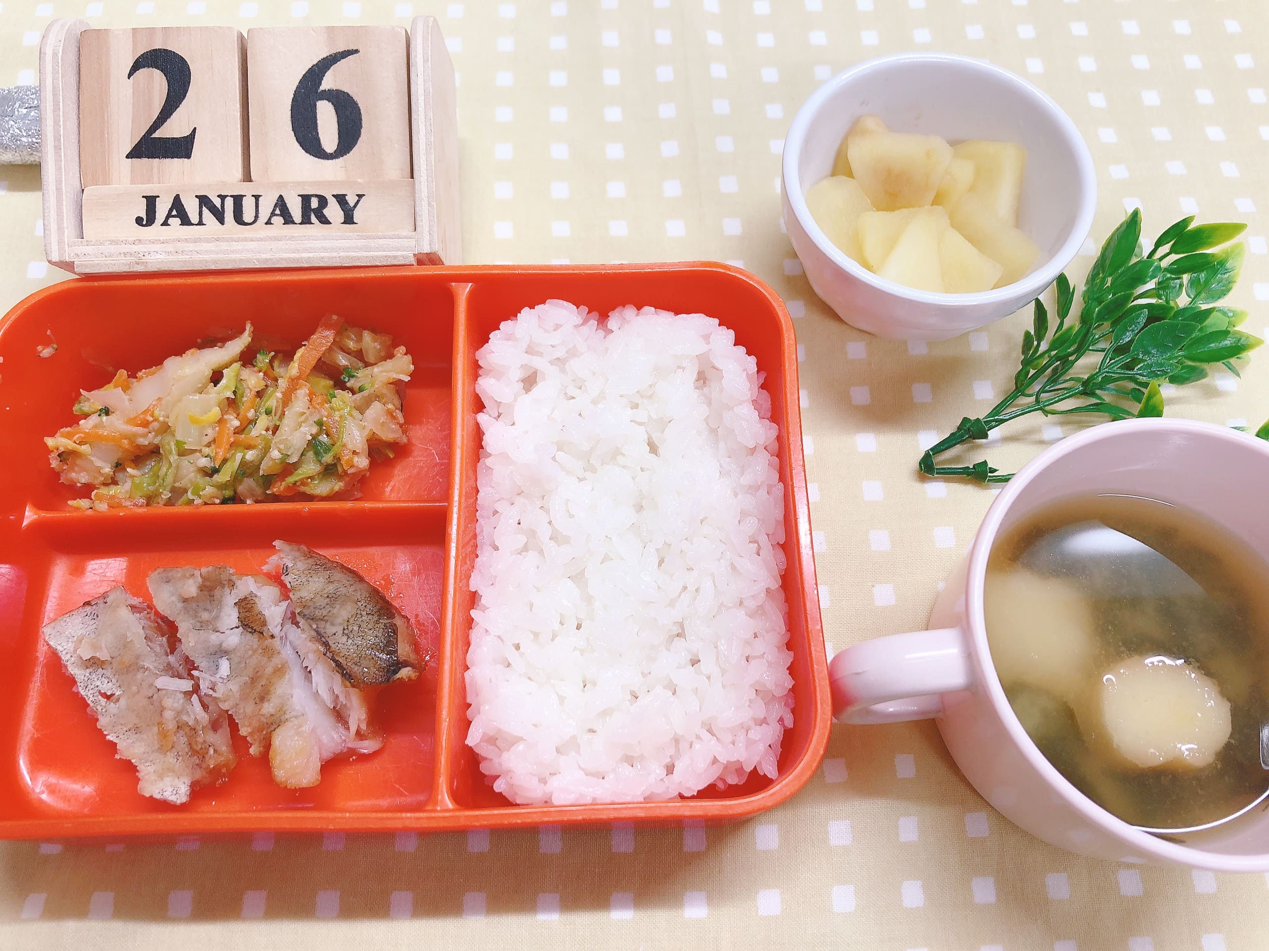 たらは骨とりをした切り身に、しょうゆ・酒でしっかり下味をつけ、片栗粉をまぶして余分な油を吸わせないように調整。じっくり焼き、外はサクサク、中はふんわりとした仕上がりに。やさしい味が米飯にぴったりで、「パクパクお魚を食べていた」と夢中で頬張る様子が見られました。