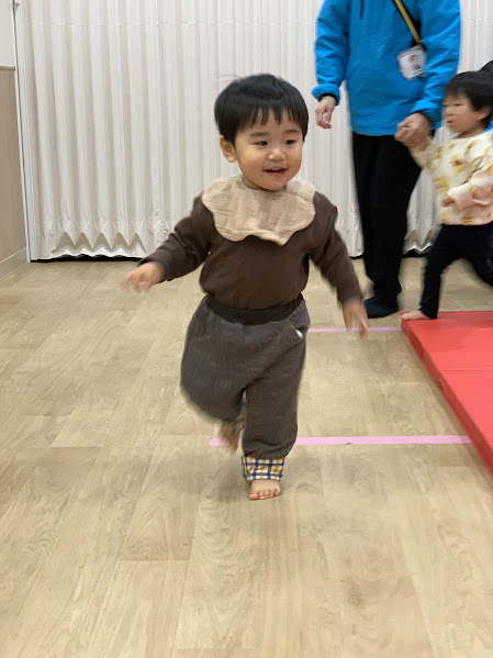 お化けの音が聞こえたらマットに逃げろ~!よく聞いて反応してくれました!