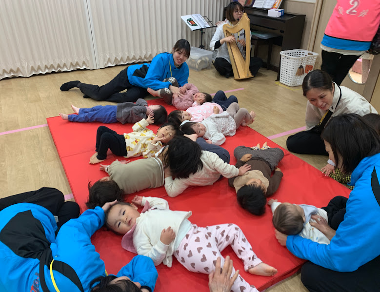 「むすんでひらいて」を手繋ぎバージョンで行いました!