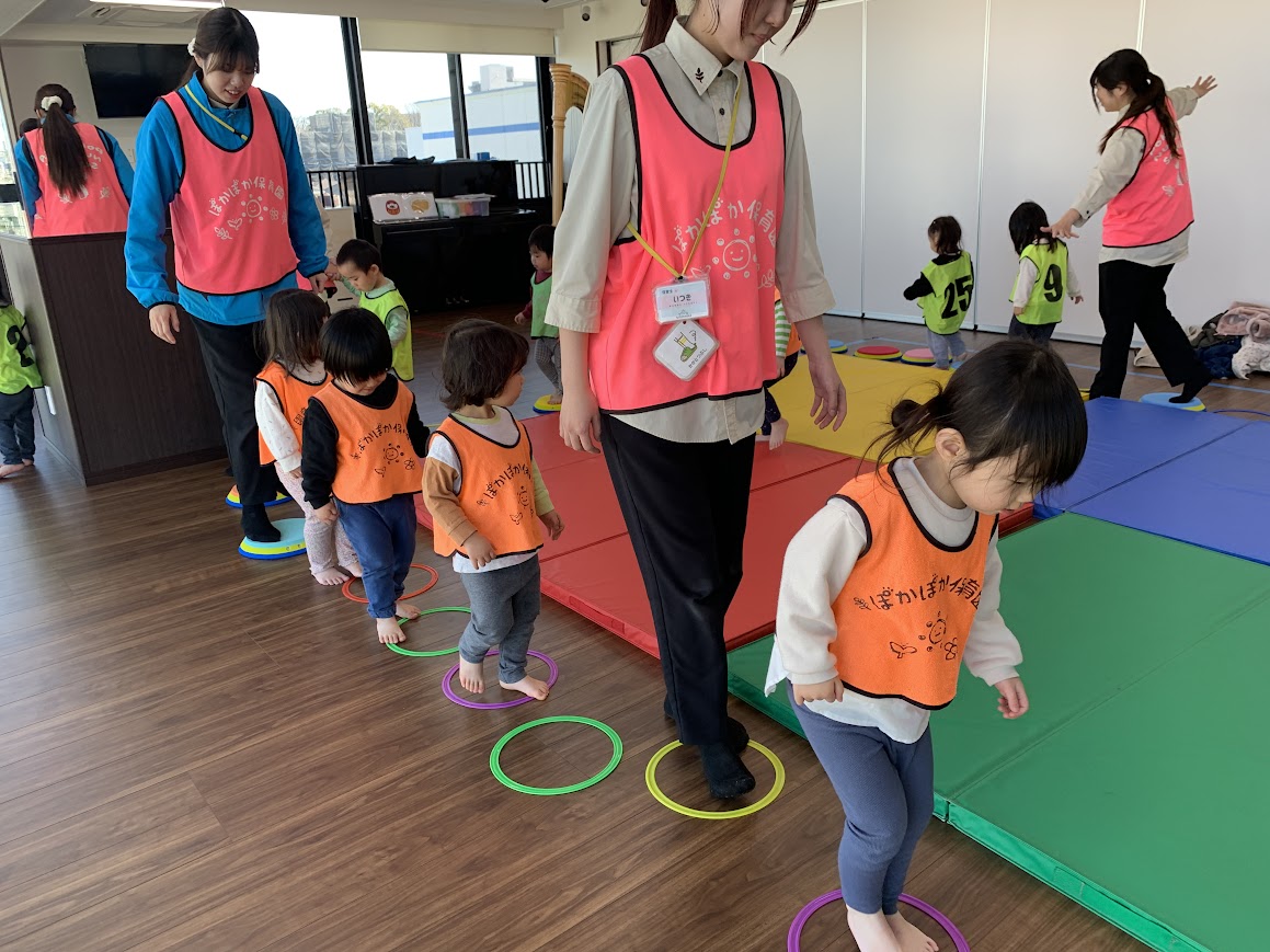 虹組のお友だちはフラフープサーキットで遊んだよ!