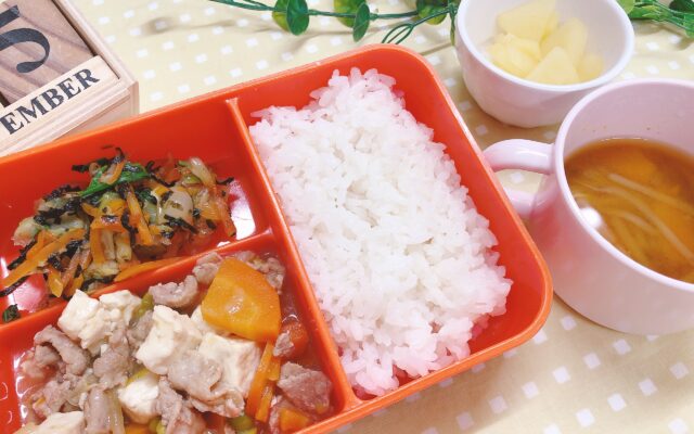 たまねぎを飴色になるまで炒めることで、うま味と甘味を最大限に引き出しました。醤油・みりん・酒のベースに、子どもにも食べやすい優しい味に。ご飯との相性抜群で、「おかわり!」の声が飛び交いました。