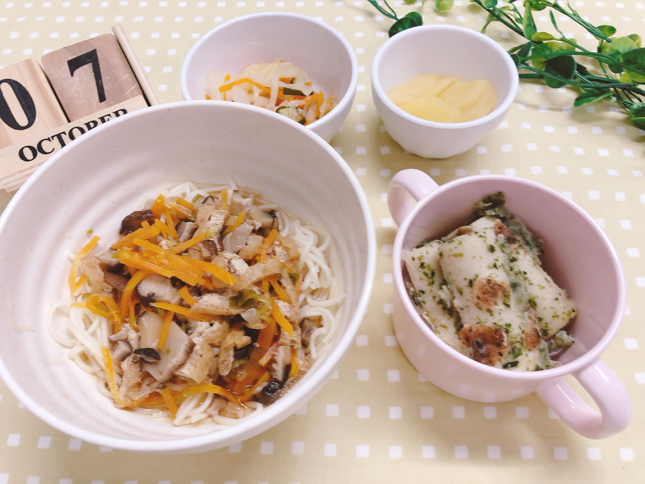 具材には干しシイタケ、人参、油揚げ、万能ねぎをたっぷり使用した具だくさんスープを合わせました。だしのうま味を引き立てるため、細めのそうめんをチョイス。子どもたちは「つるつるして食べやすい!」と夢中で口に運び、おかわりの声がたくさん聞こえました。体が温まり、野菜も自然に摂れる一品です。