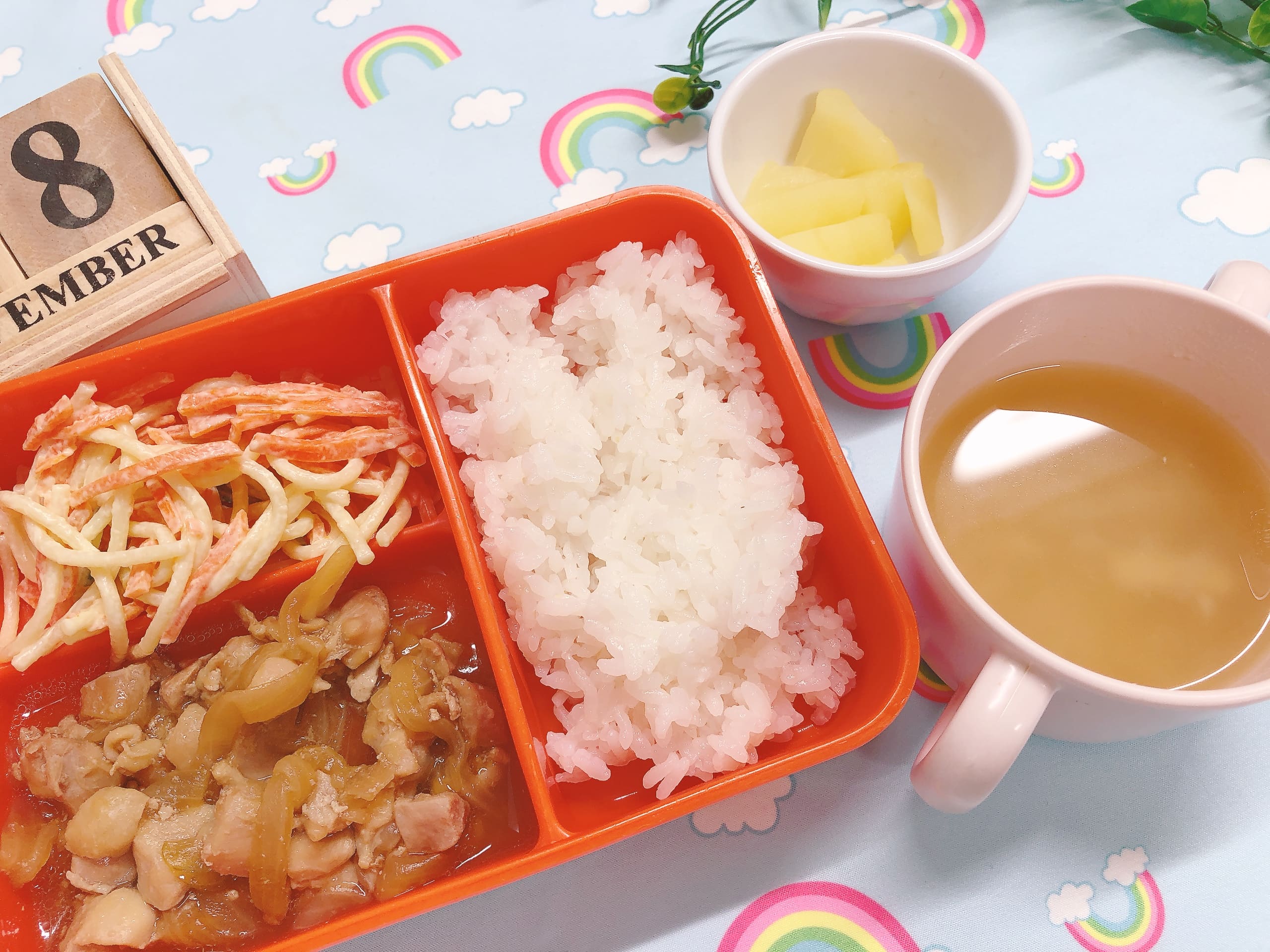 スパゲティはやわらかめに茹でて粗熱を取り、きゅうり・人参とマヨドレで和えました。彩りの良い組み合わせで、野菜が苦手な子どもも「お皿ピカピカ!」になるほど楽しんで食べてくれました。
