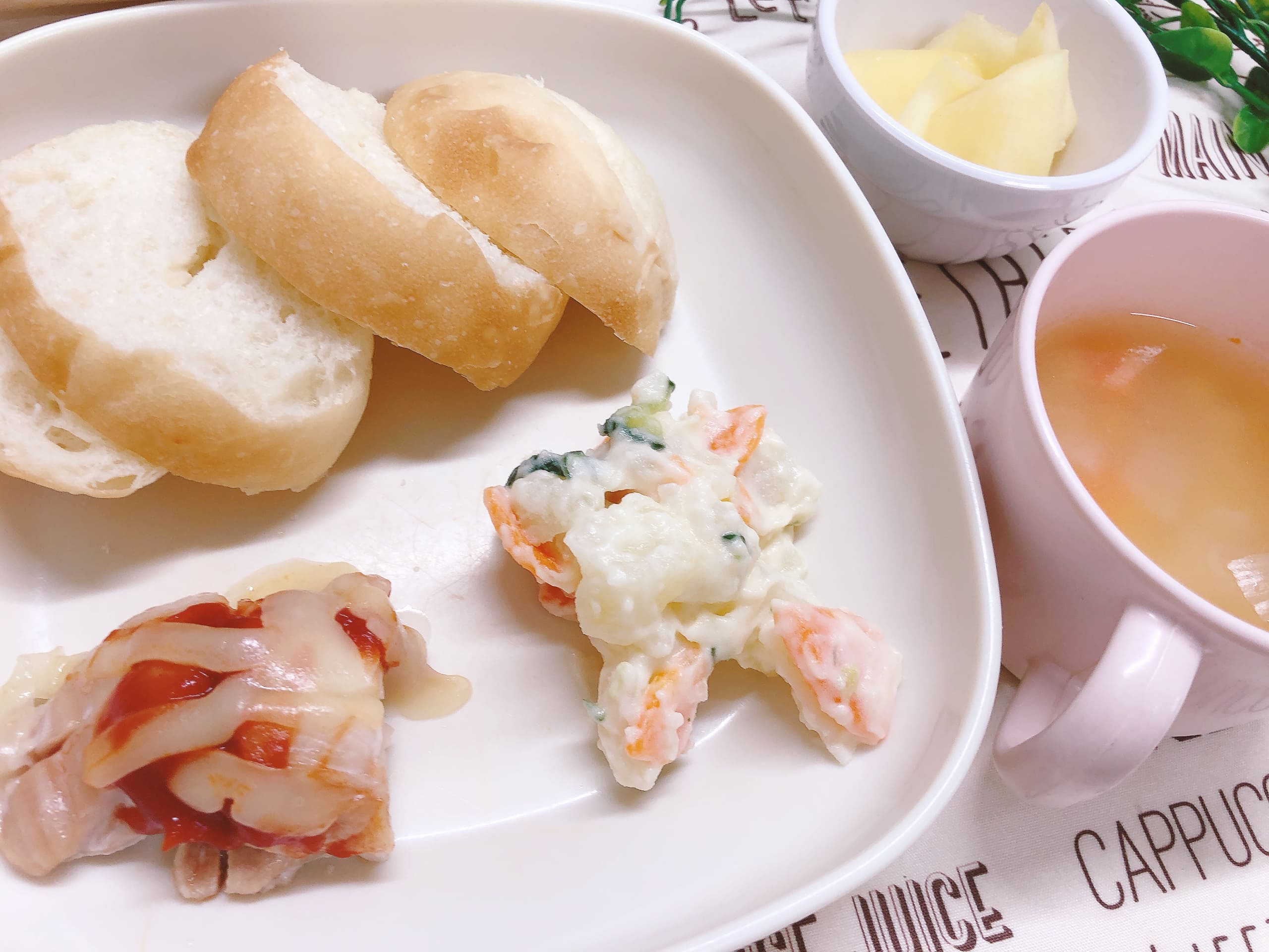 ホクホクに茹でたじゃが芋と人参、シャキシャキのきゅうりをマヨネーズと和えたさっぱり系。じゃが芋の自然な甘みとクリーミーな風味が子どもに大好評で、「お皿ピカピカ!」と笑顔で完食する姿が印象的でした。