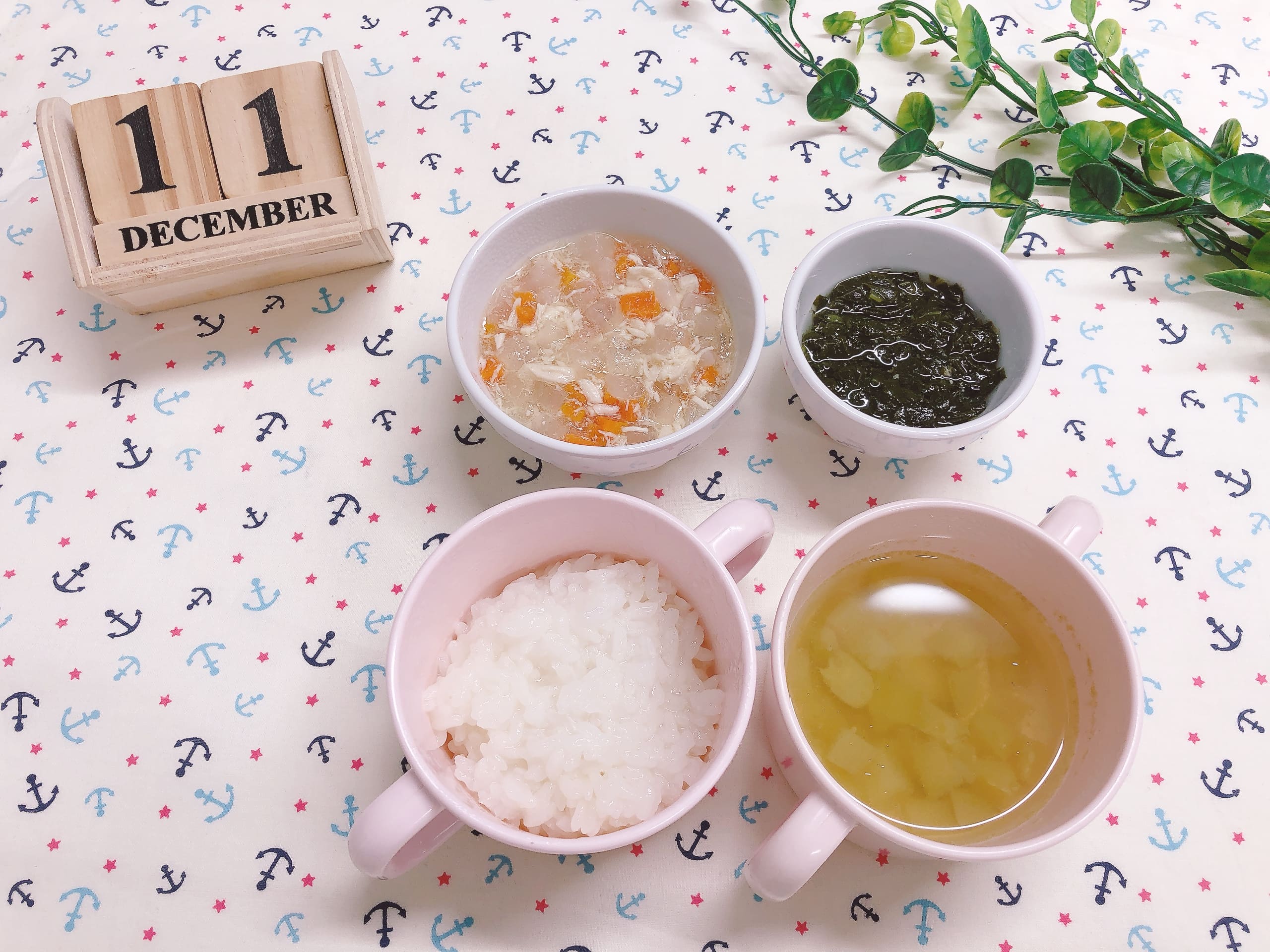 だしは昆布と鰹節の合わせだしを使用。ビタミン豊富な小松菜、甘みが増した大根、つるりとなめこを入れて、体が温まる一杯に仕上げました。「お味噌のいい香り!」とお椀を両手で抱えて飲む姿がかわいらしかったです。
