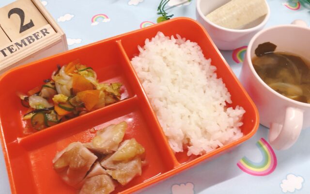 本日のおやつは、ヨーグルトの中にりんごの角切りコンポートが入っています。