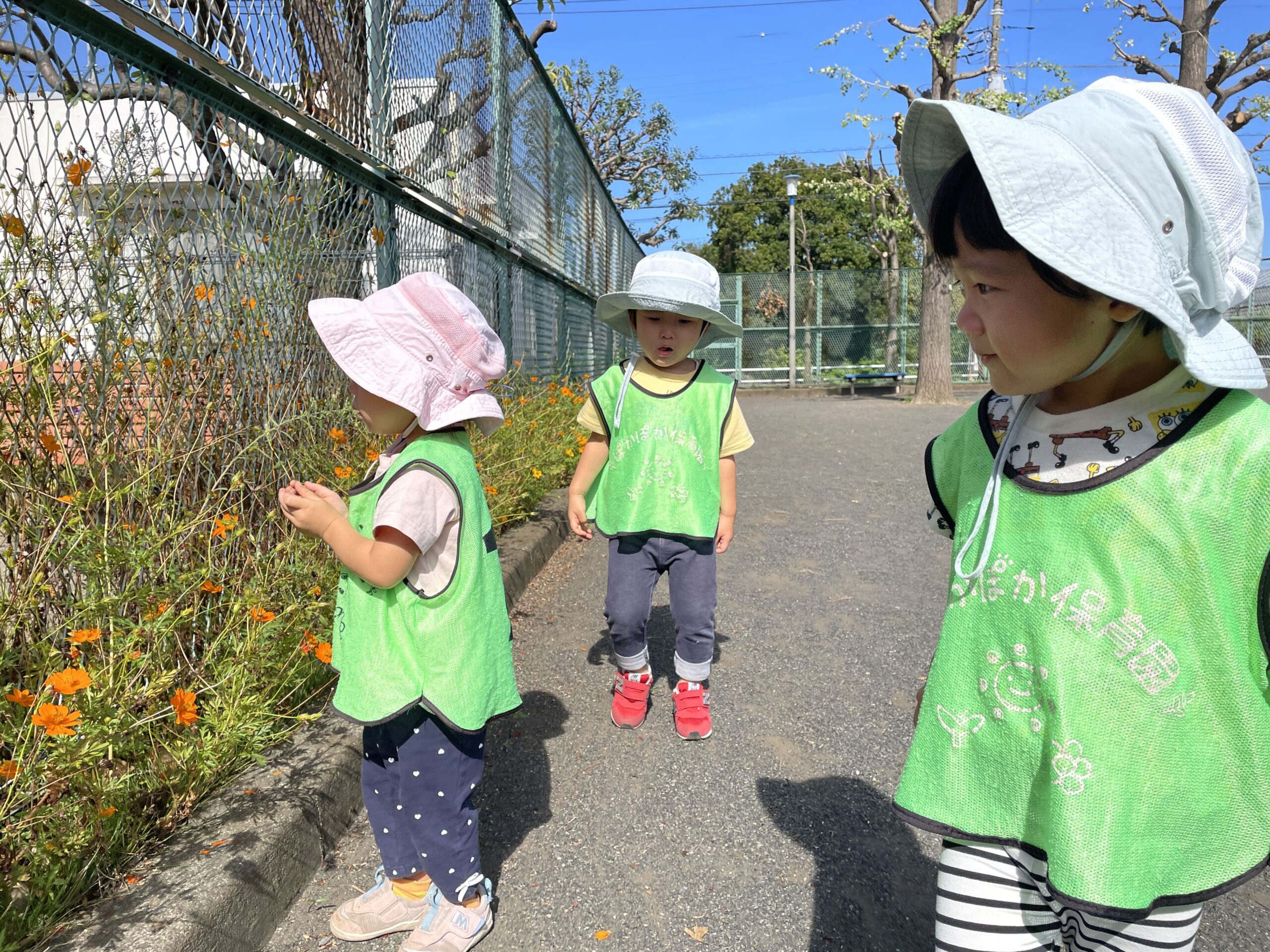「秋の花だね」「ふわふわゆれてる!」と先生と子どもの会話が弾みます。