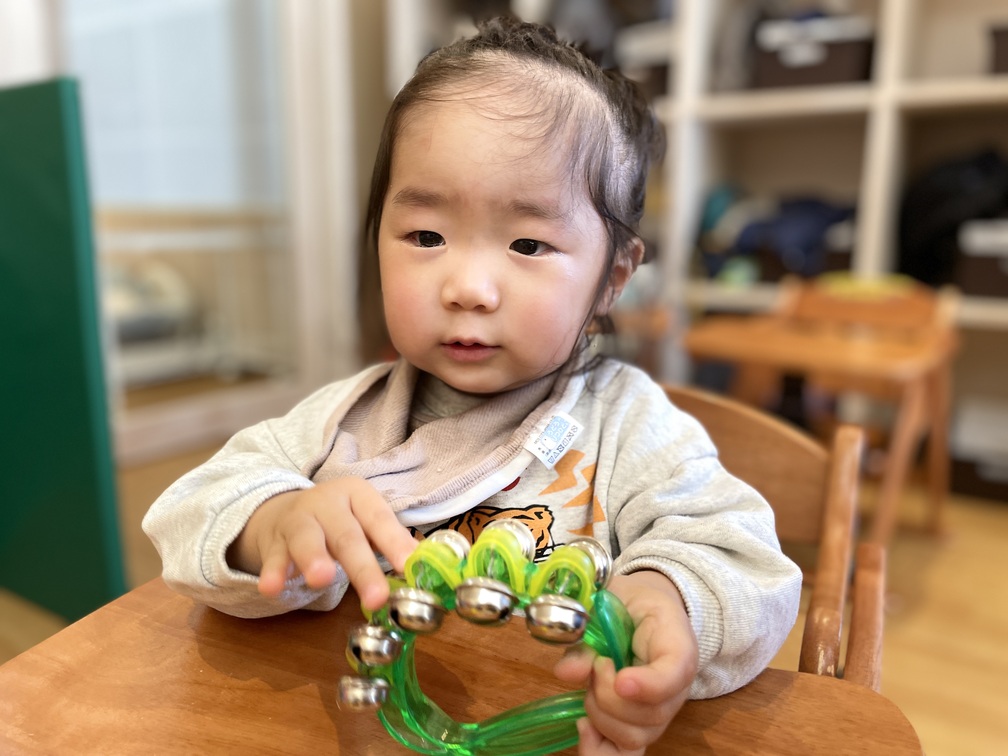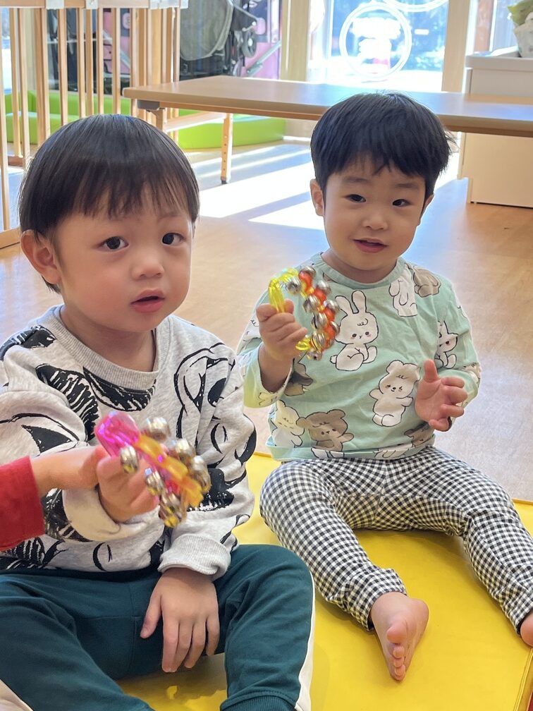 今月の歌の、あわてんぼうのサンタクロースをリズムを感じながら鳴らしました♪