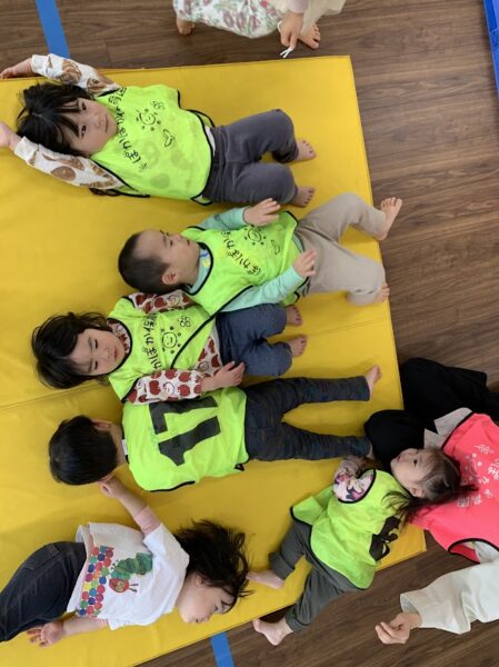 虹組さんは言葉のリズムと色を結び付けてマット移動を行いながら、リトミックを楽しみました!