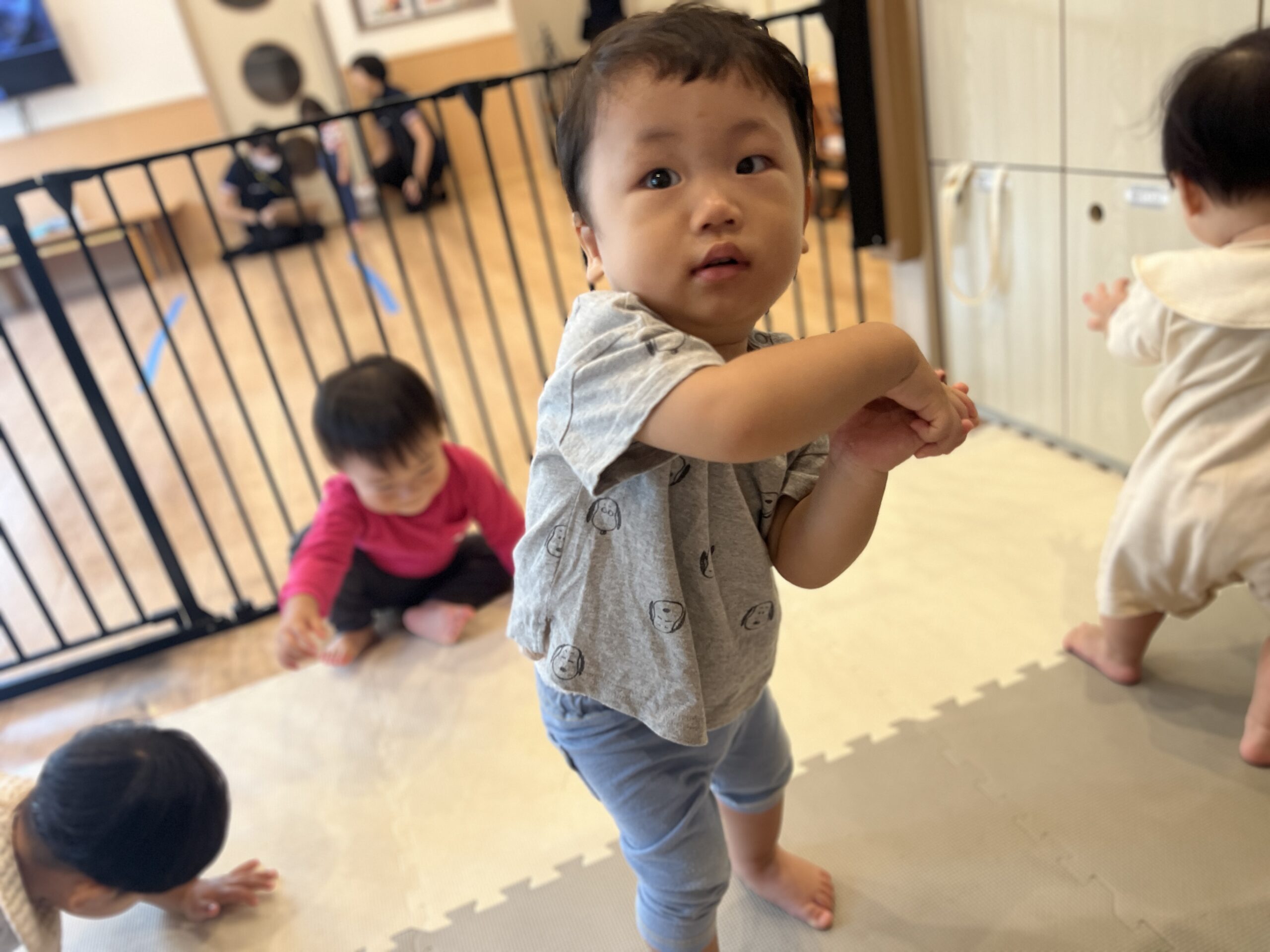 その隣では、小さなお友達が室内で運動を楽しんでいました。