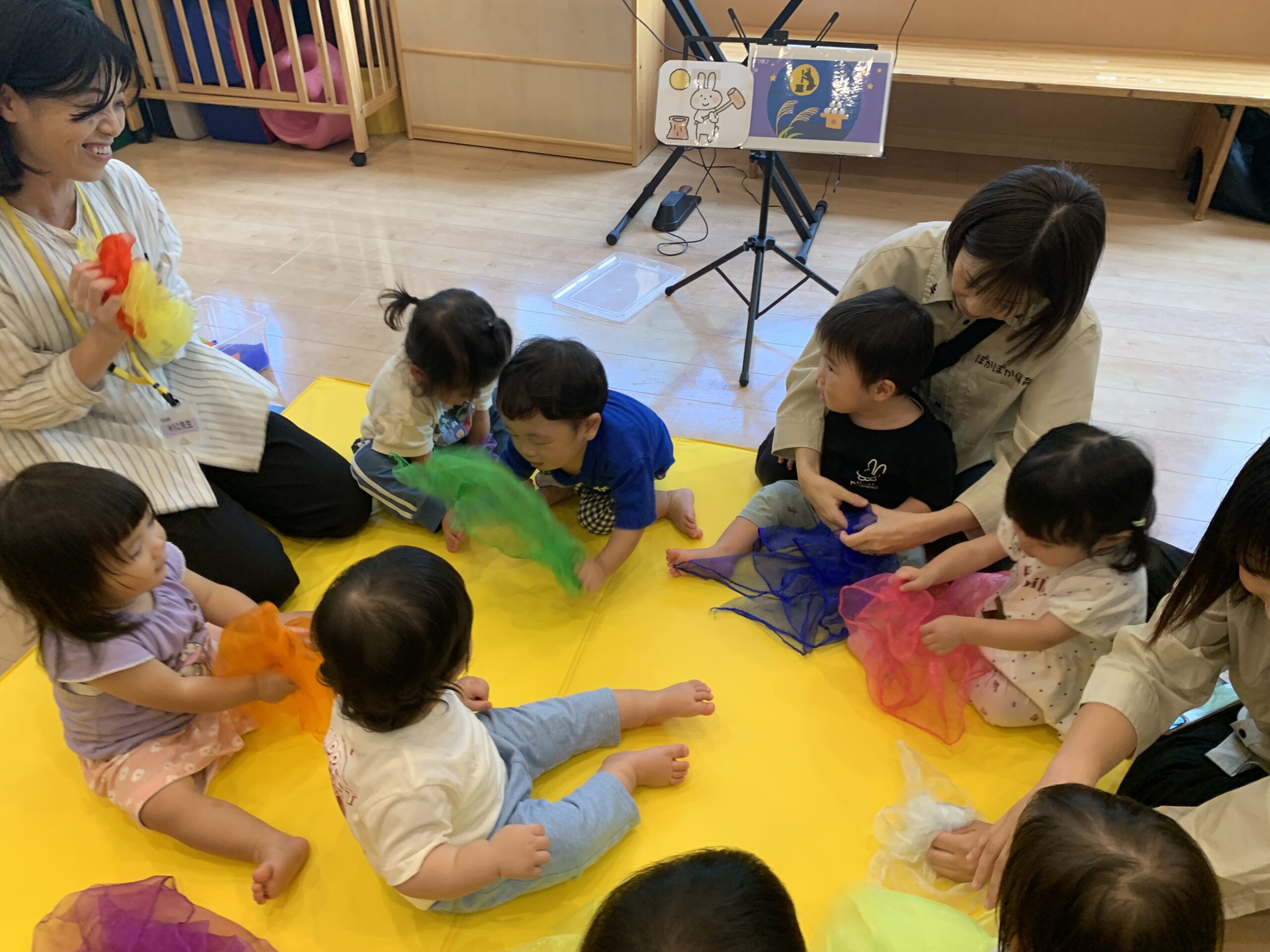 虹組さんでは、お話の聞き方・ルールや約束ごとも、音楽あそびの中で経験していきます。