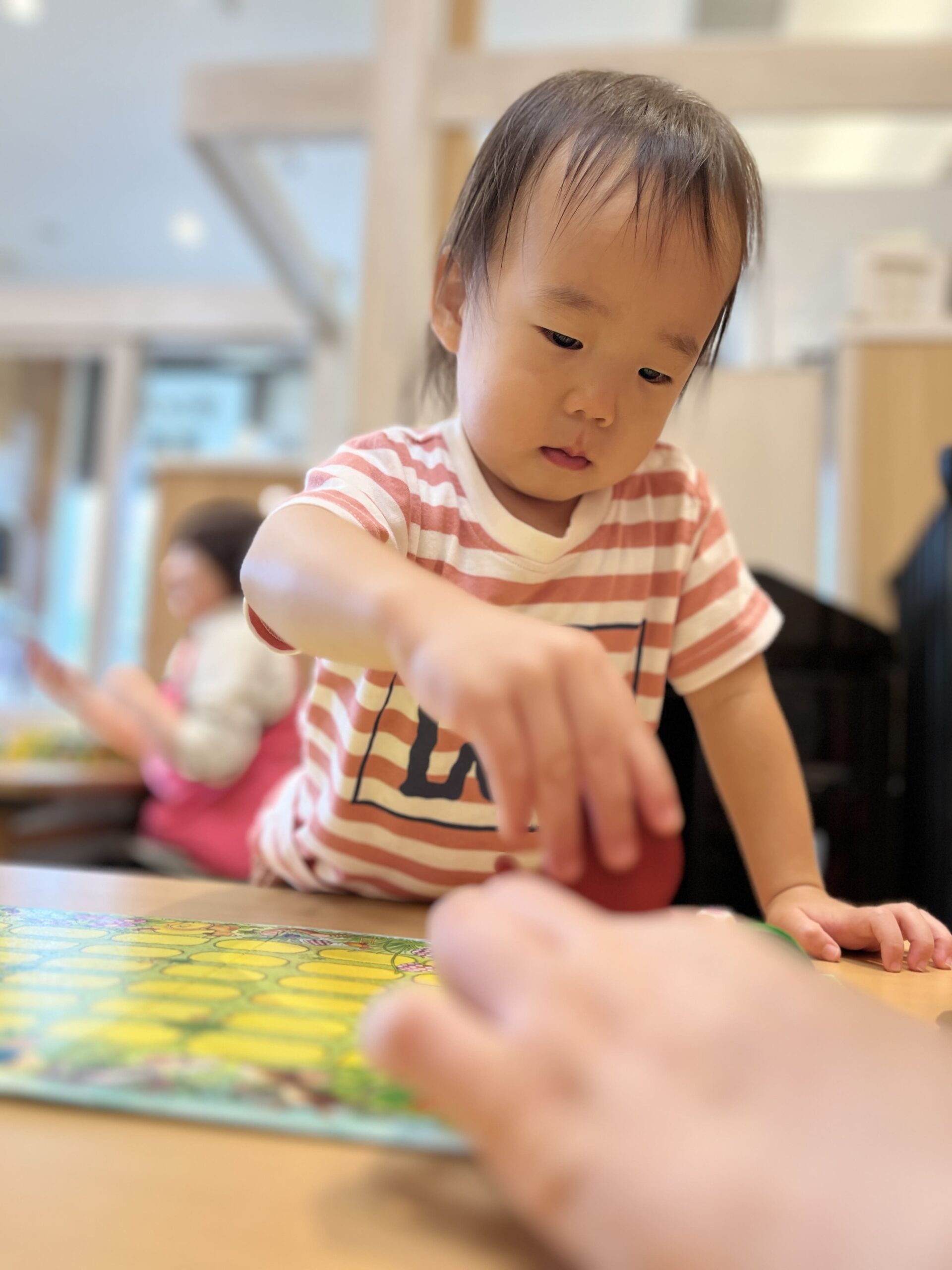 今日は曇り。まずは保育室ではアナログゲームに挑戦しました。