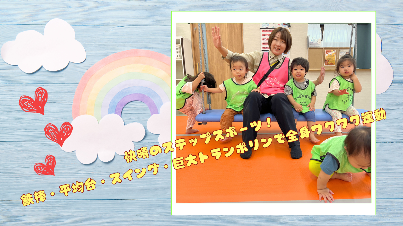 ステップスポーツ!鉄棒・平均台・スイング・巨大トランポリンで全身ワクワク運動|八王子市保育園 ぽかぽか保育園多摩平園