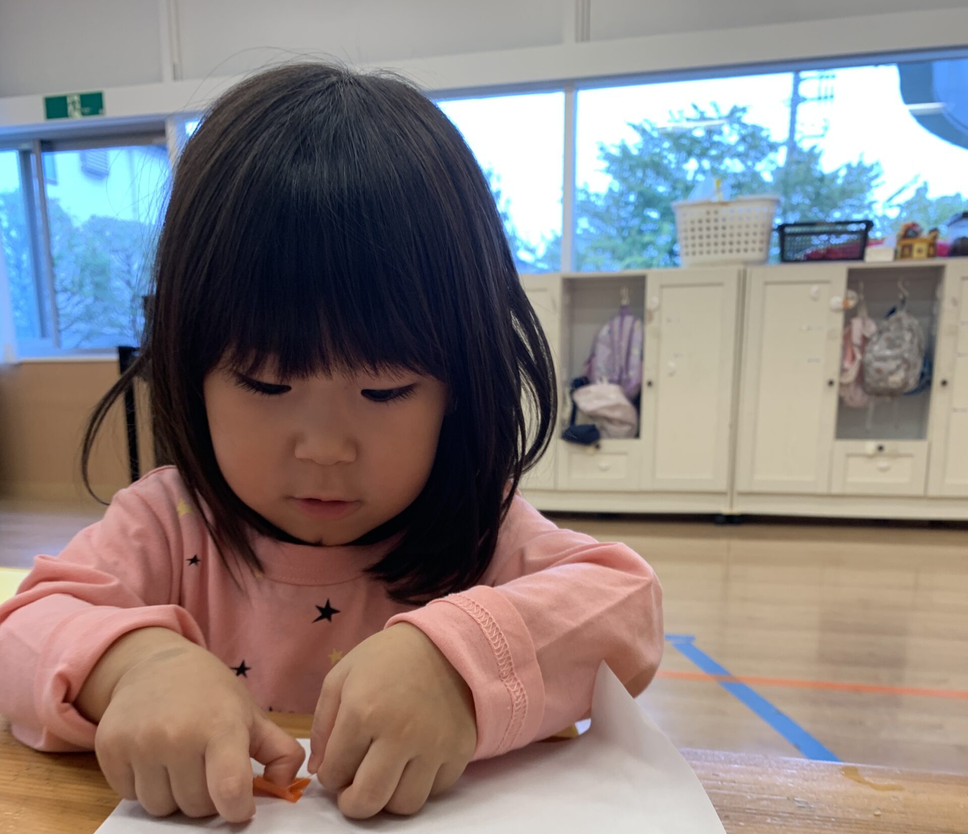「これは梅干しかな?」「鮭かな?」と想像を膨らませながら、集中して取り組む姿はとても可愛らしかったです。