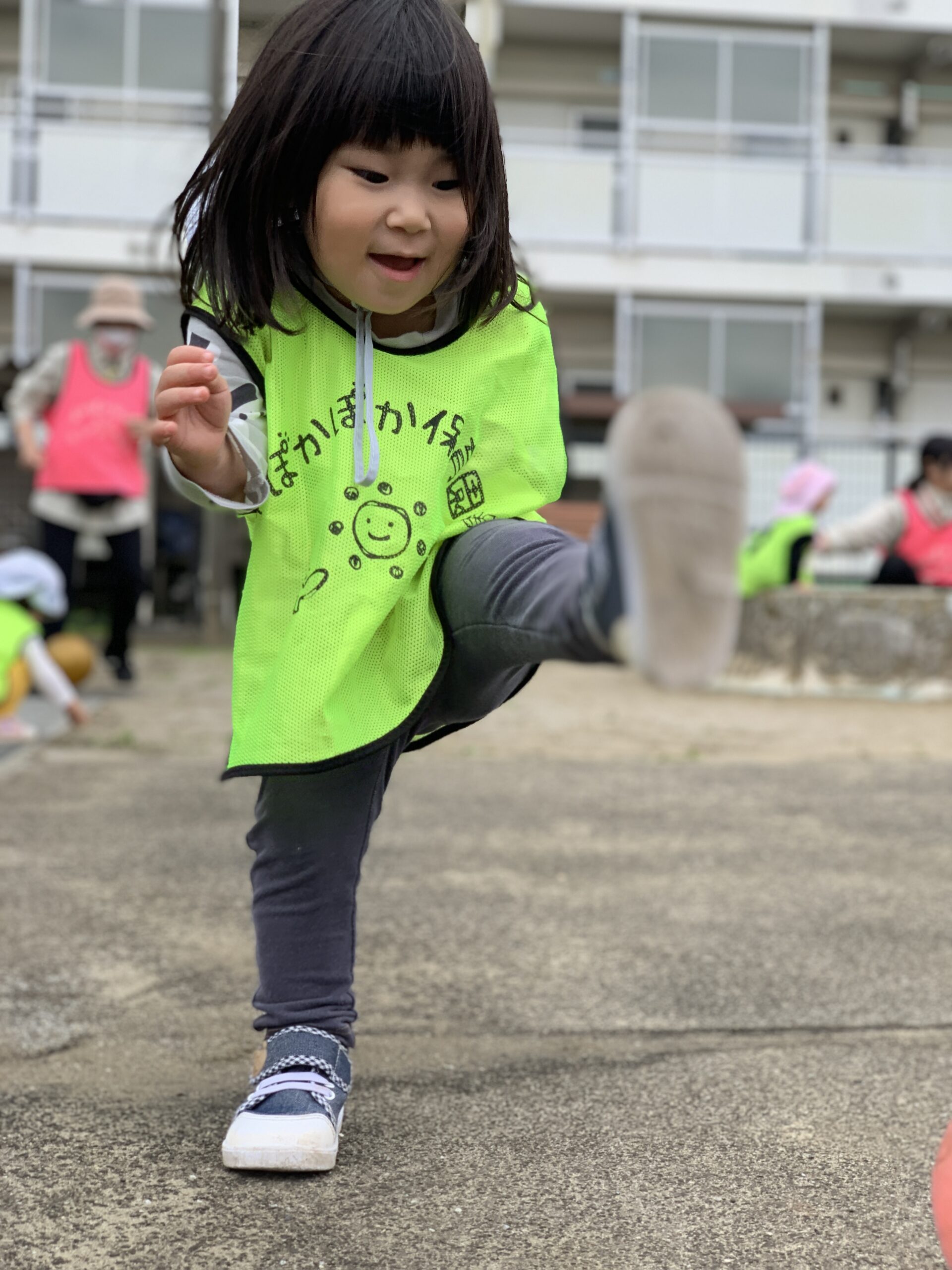 「カエルさんみたいにぴょんぴょん跳ねてみようか?」と先生が言うと、
