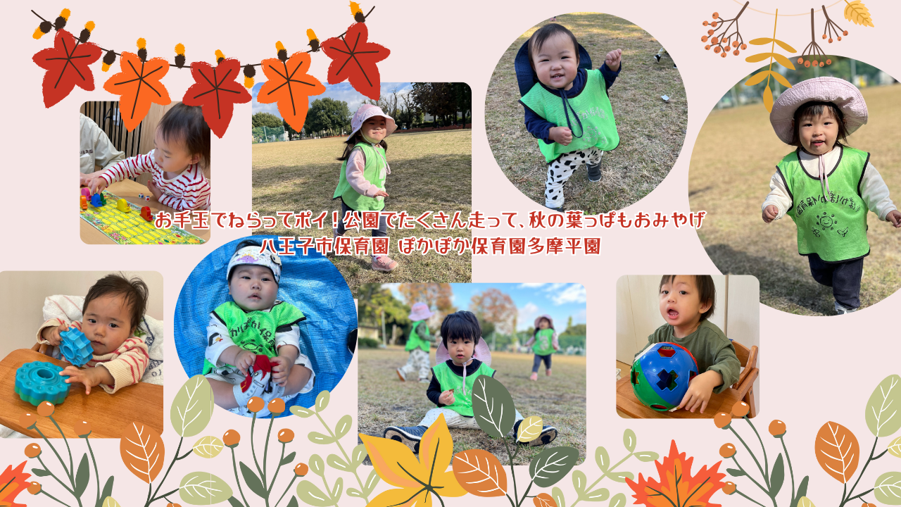 お手玉でねらってポイ!公園でたくさん走って、秋の葉っぱもおみやげに|八王子市保育園 ぽかぽか保育園多摩平園