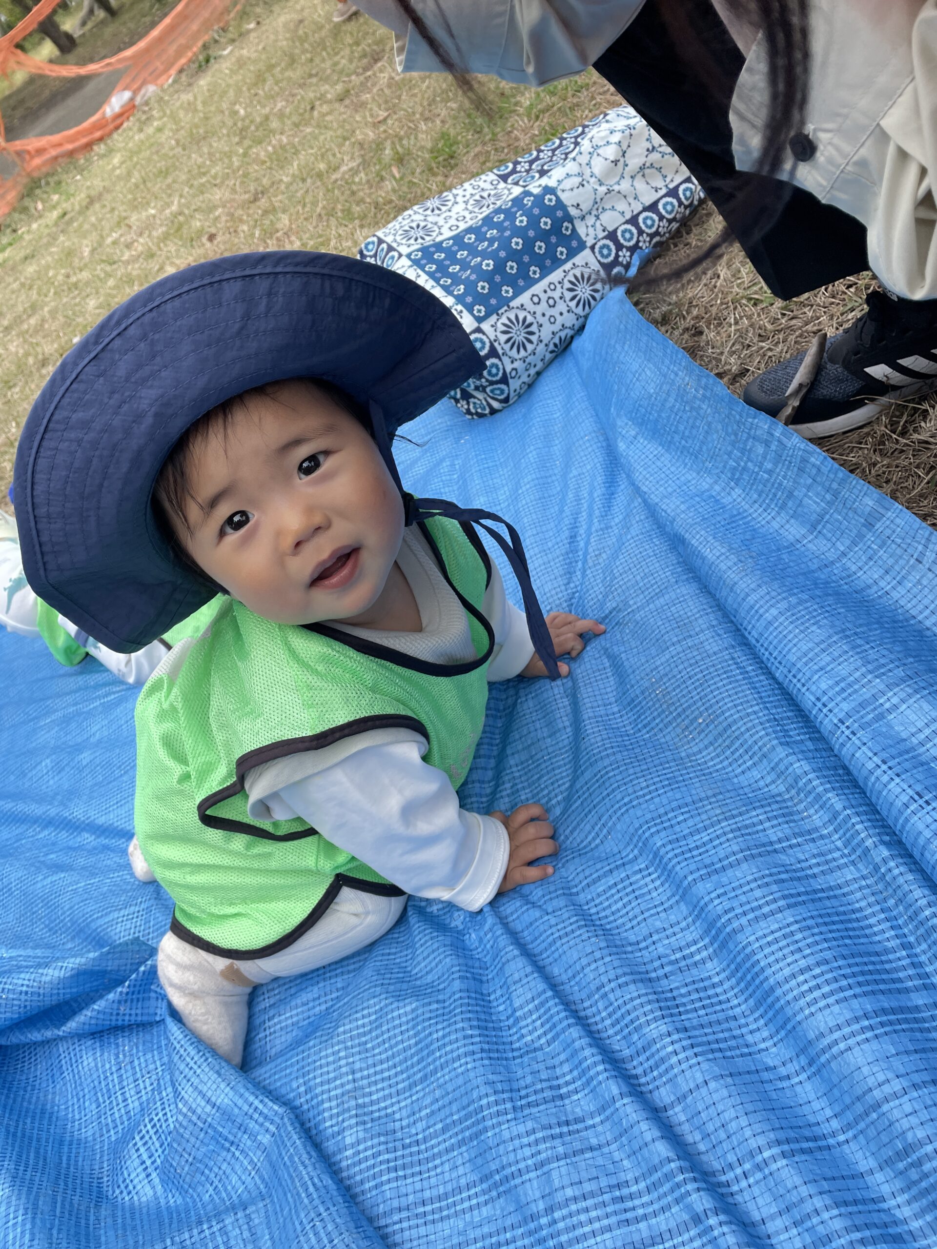 後半は公園へ出発。「シャボン玉、いくよー」「まって!つかまえる!」と2歳さんが風の向きを読んで追いかけ、1歳さんは「ふわふわ、きえた!」と不思議そう。先生が「ゆっくり息をふいてみて」と吹き方を伝えると、大きな玉がふわり。「わぁ!」と0歳さんが手を伸ばし、当たる前にスッとしぼむ様子に目を丸くします。安全な距離を保ちながら、みんなで秋空にきらめく泡を楽しみました。