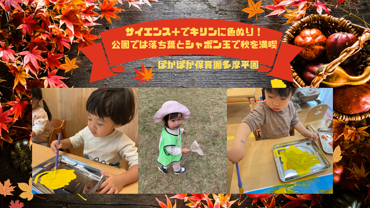 サイエンス+でキリンに色ぬり!公園では落ち葉とシャボン玉で秋を満喫|八王子市保育園 ぽかぽか保育園多摩平園