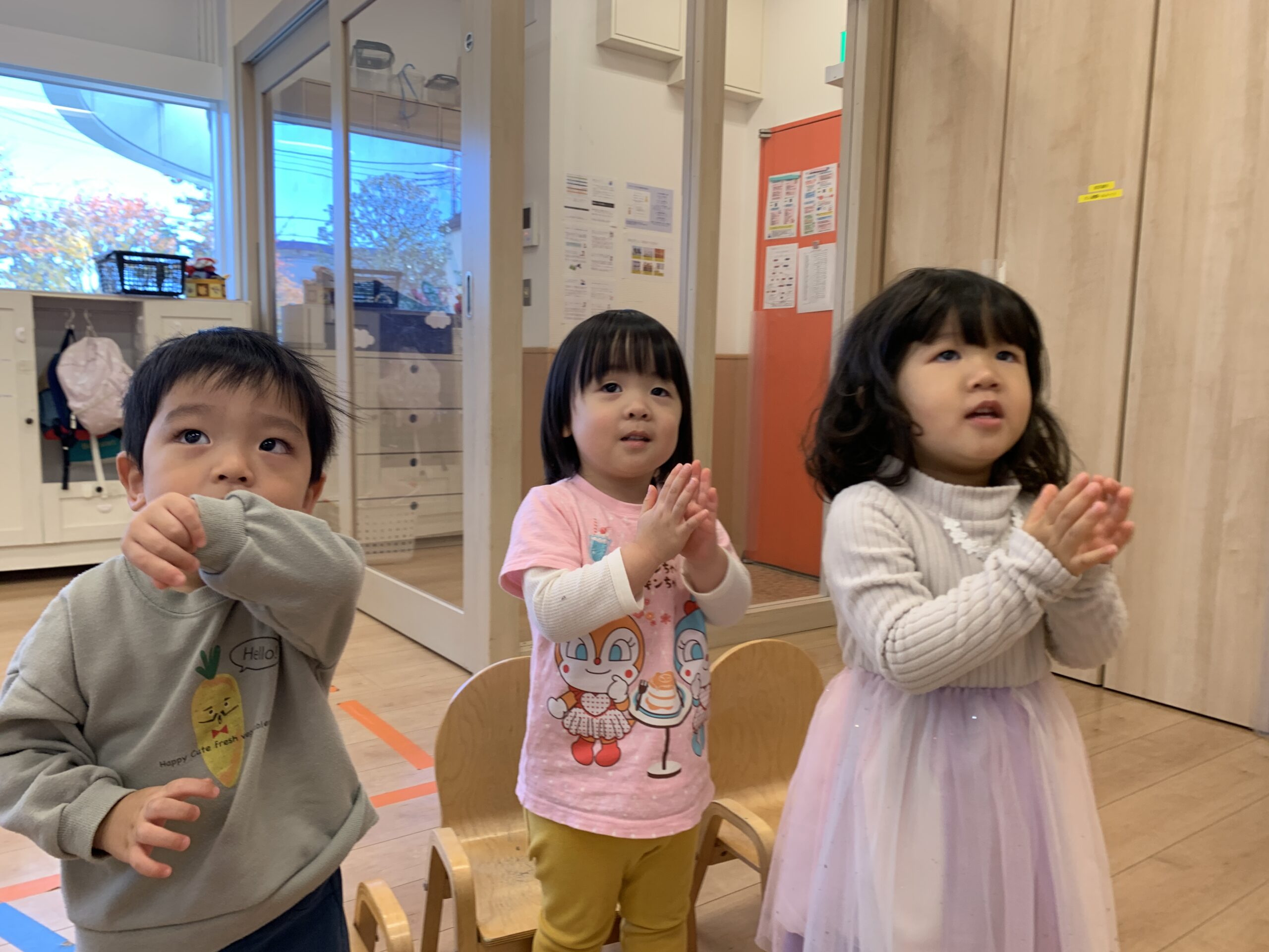 今日はきらめく晴天に恵まれ子どもたちの元気な声が室内にもテラスにも響き渡る一日となりました。