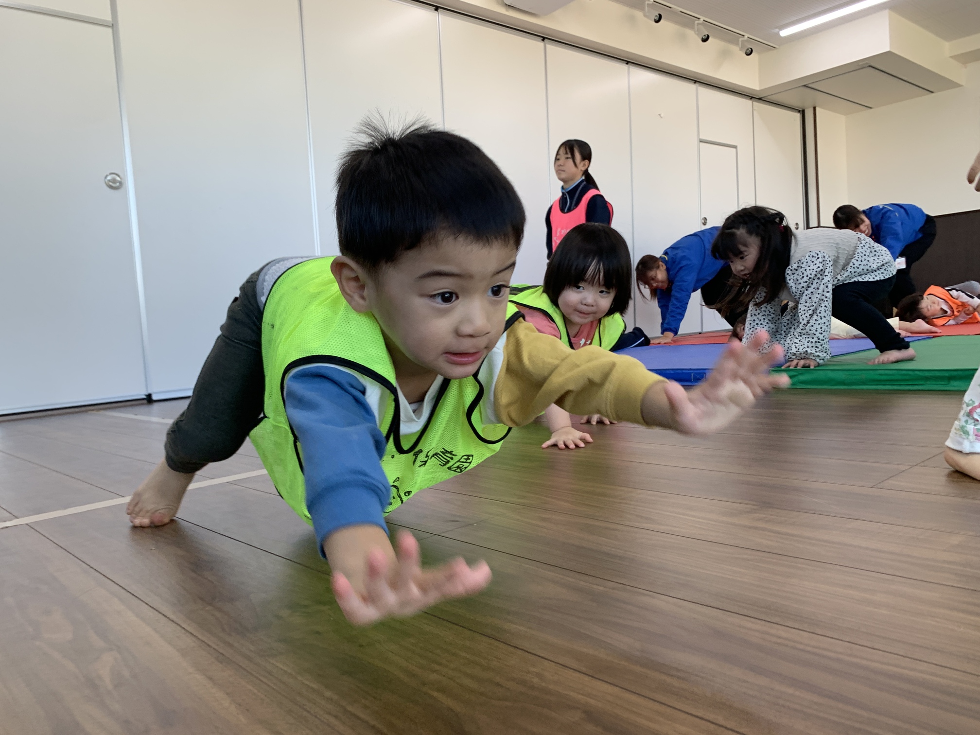先生が「くまさんになって歩こうか!」「次はうさぎさんだよ!」と声をかけると、