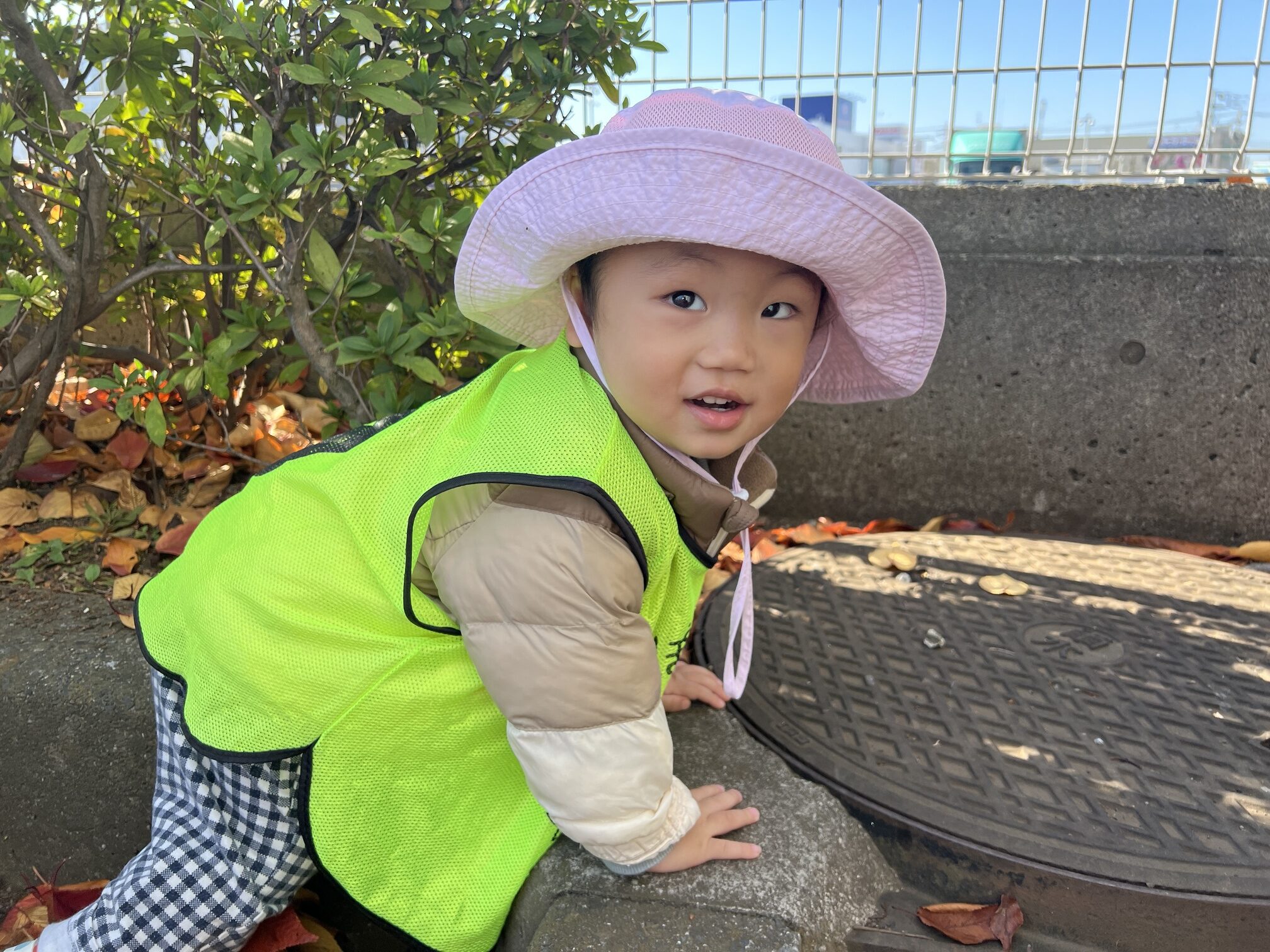 小さなお友だちの0歳児さんと1歳児さんは、戸外で自然遊びを満喫しました。