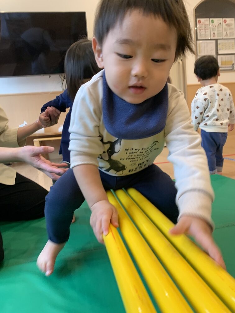 乳児保育におけるこのような運動遊びは、体幹を鍛え、バランス感覚を養う大切な時間です。