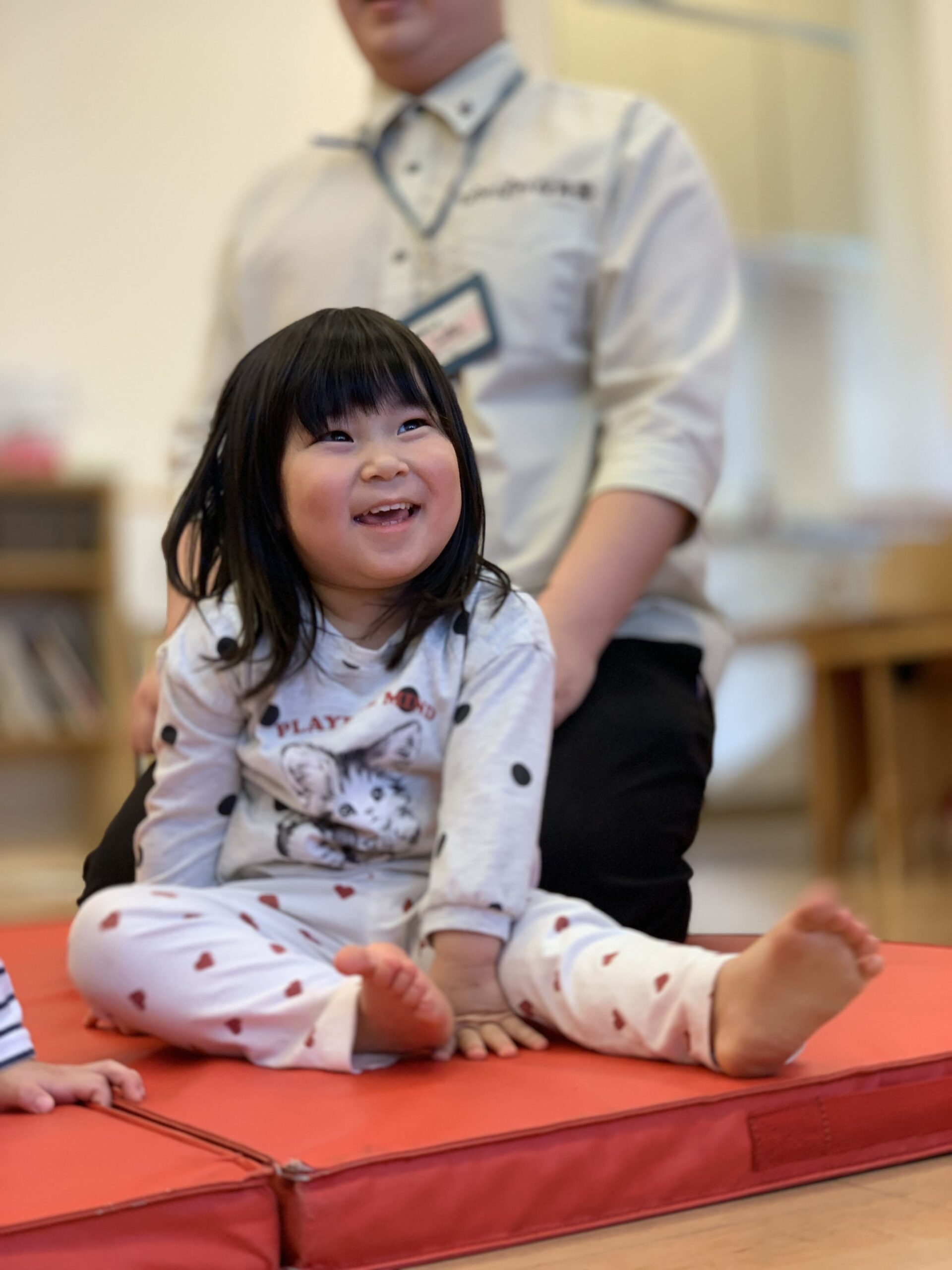 今日は、子どもたちと心温まる音楽遊びの時間と、開放的なテラスでの外遊びを楽しみました。