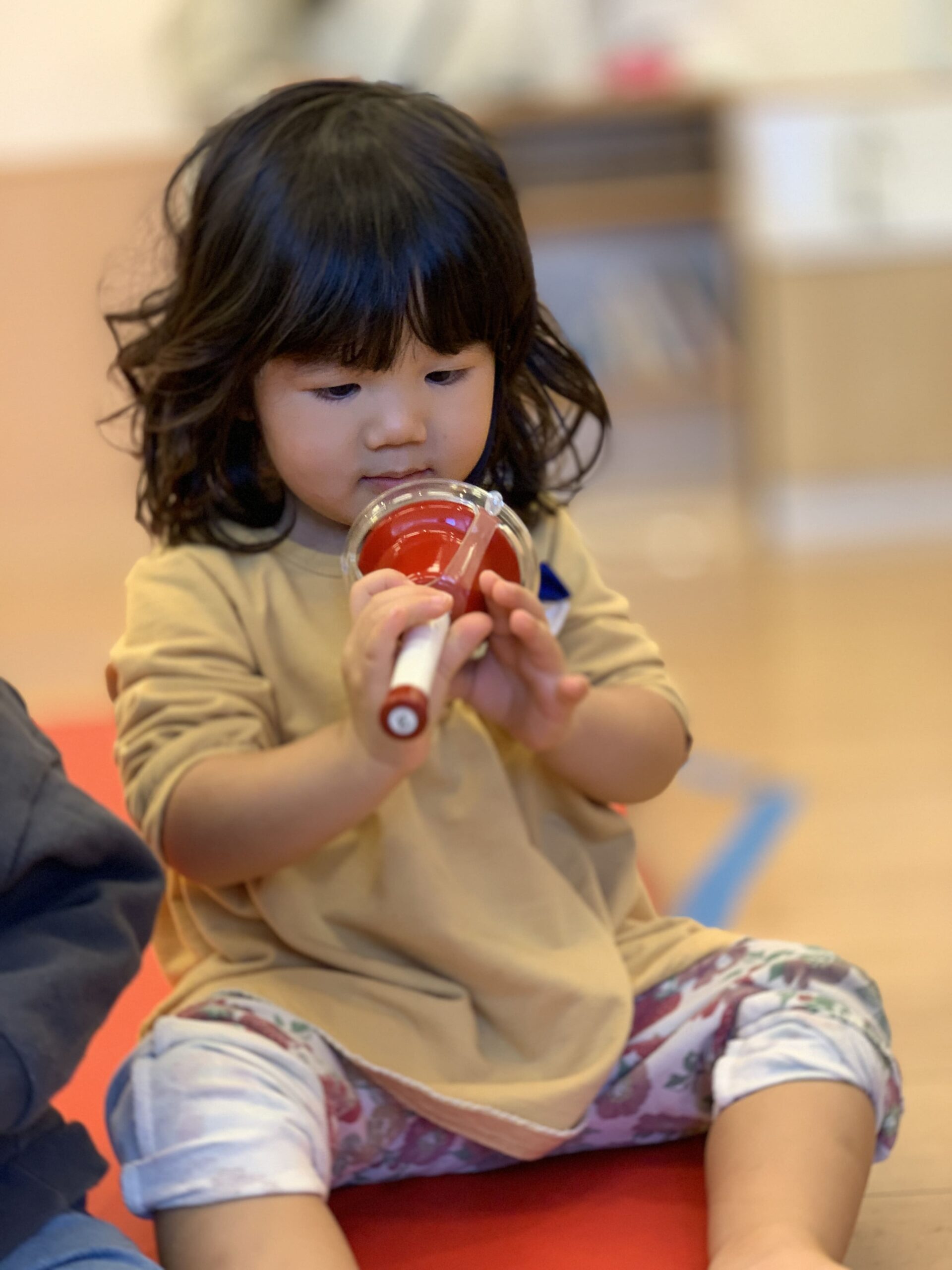 「見て、先生!これ、きれいな赤色!」と、得意げに先生に見せてくれるお友達もいます。
