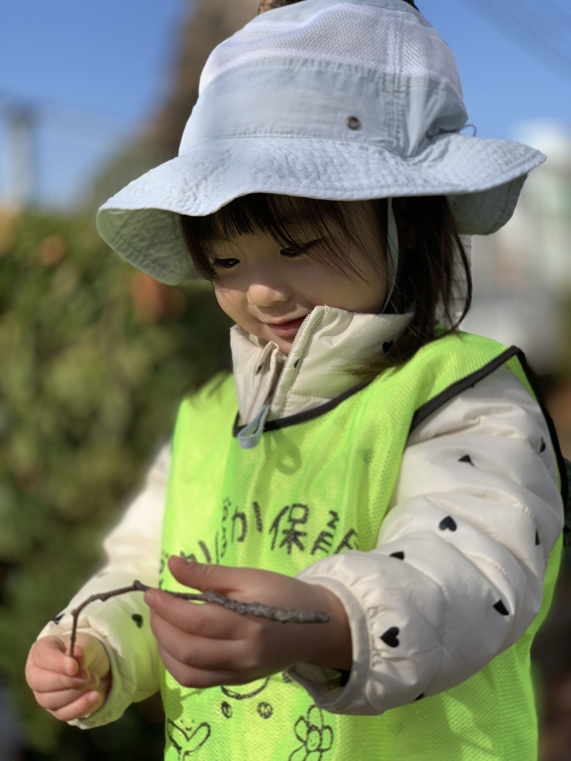 乳児保育において、このような自然素材に触れる体験は、五感を刺激し、豊かな感性を育む大切な時間です。