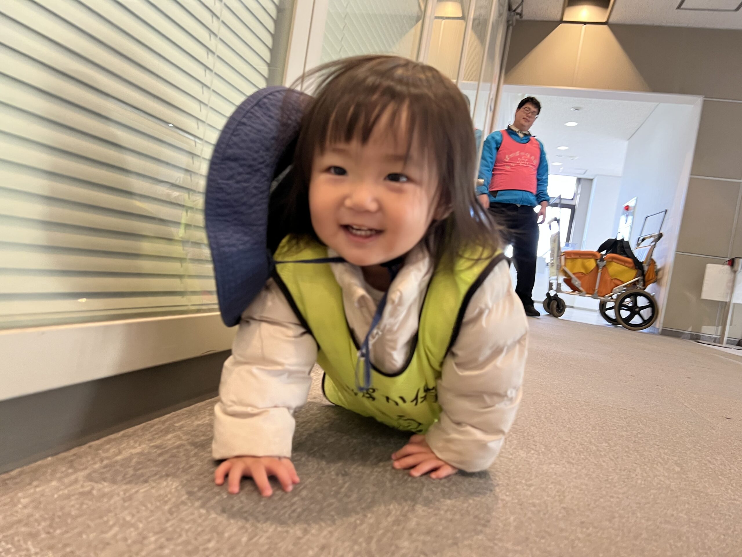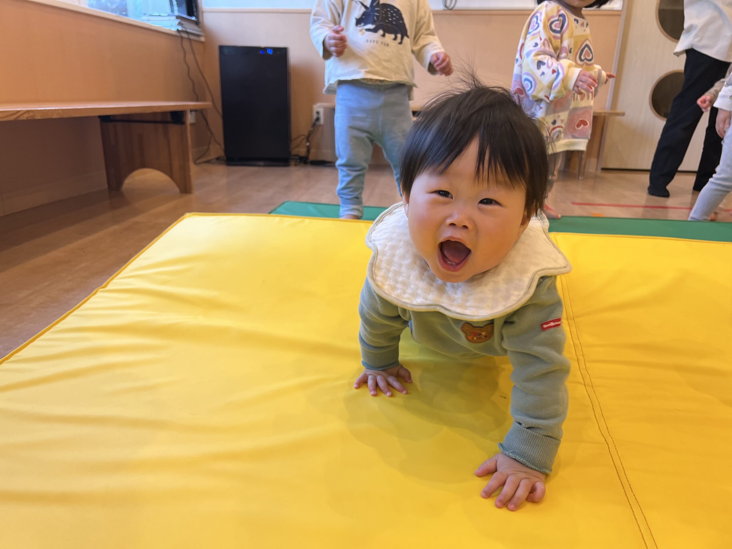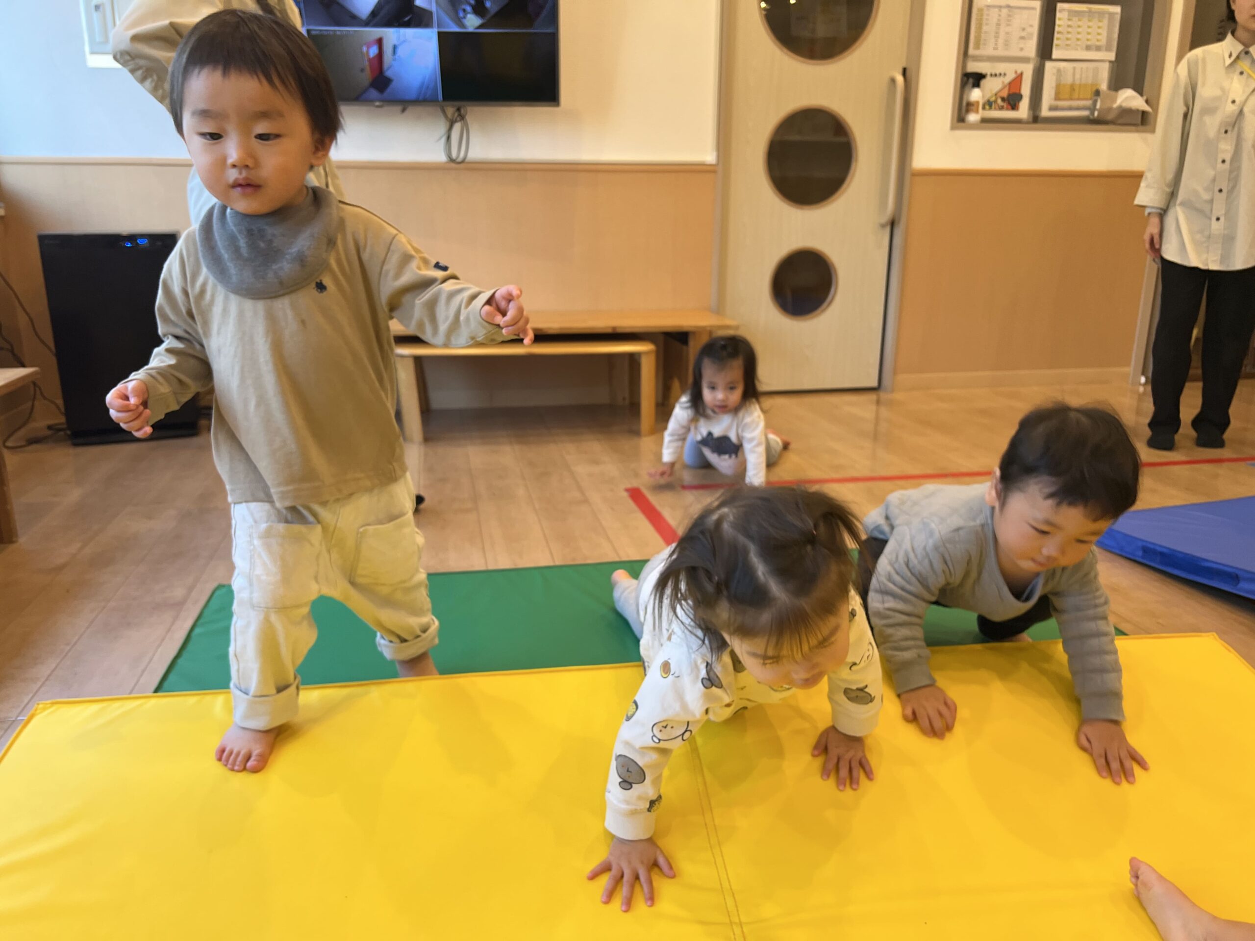 2歳児さんたちは、お友だちと競争するように速いスピードでハイハイ!