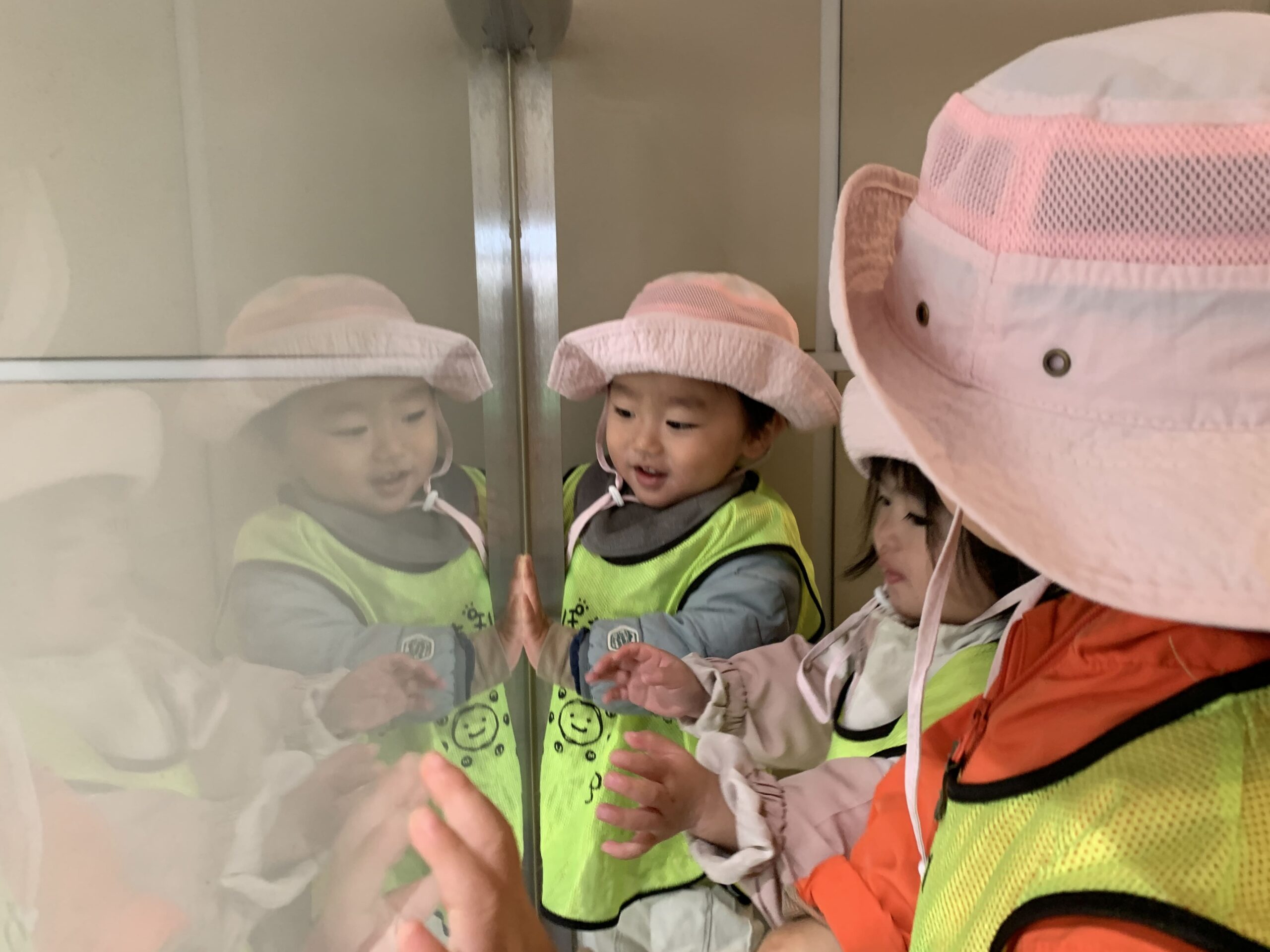 「あ!お友だちがいるよ♡」みんなで窓に向かって手を振っていました。