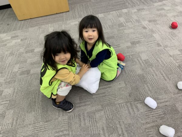 探検の後は、広い部屋に移動して、みんなで玉入れをしました。